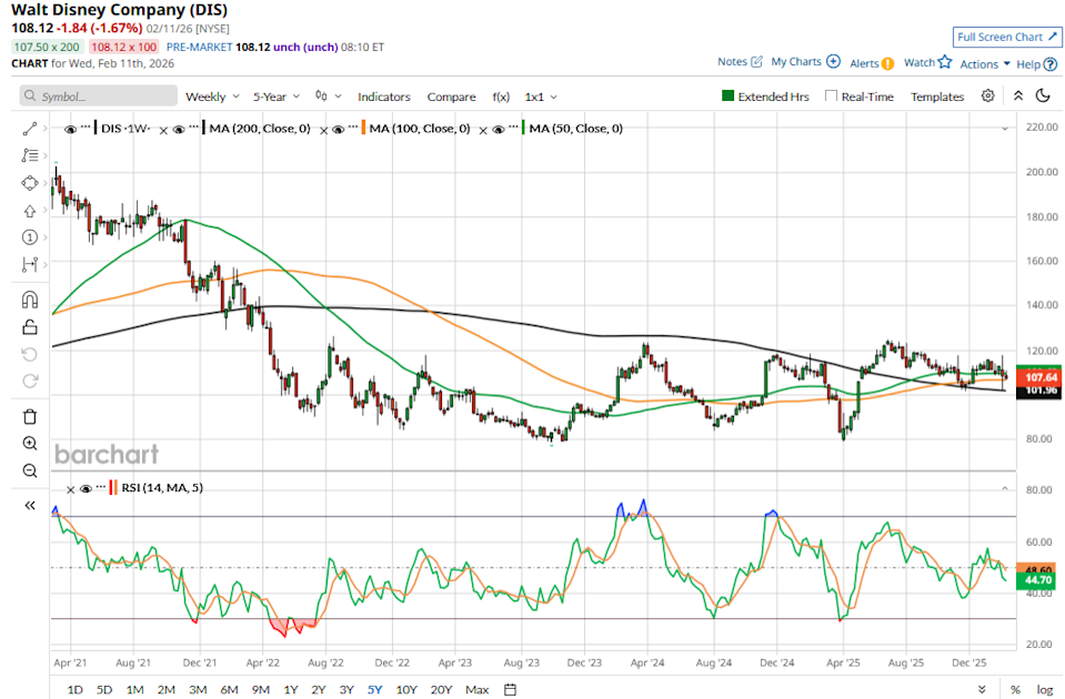 Disney (DIS) stock has been a perennial underperformer, losing more than 40% of its market capitalization over the last five years. Amid this frustrating underperformance, the company rehired its former CEO, Bob Iger, to lead the company again as chief exective in late 2022. Now, Iger is set to hang up his spurs next month, handing over the baton to Josh D’Amaro. However, Iger will remain a strategic advisor until the end of the year to ensure a smooth transition. What should investors know as the C-suite shifts for Disney? Let's take a closer look. 3 Highest-yielding Dividend Aristocrats That'll Pay You For Generations Competition Is Heating Up for Micron. Should You Buy, Sell, or Hold MU Stock Now? Cisco Systems Reports Lower Free Cash Flow - But, Is CSCO Stock a Buy Here? Stop Missing Market Moves: Get the FREE Barchart Brief – your midday dose of stock movers, trending sectors, and actionable trade ideas, delivered right to your inbox. Sign Up Now! Iger made several strategic changes at Disney, particularly in the streaming business, where the focus shifted from growth to profitability. The strategy paid off, and the segment posted an operating profit of $450 million in the first quarter of fiscal 2026, representing a margin of 8.4%. For the full year, the company expects margins to be at 10%, which would be no mean achievement considering that the segment posted an operating loss of almost $1.5 billion in fiscal Q4 2022, which was the last full quarter under former CEO Bob Chapek. Disney’s Experiences business, which houses the Parks, posted revenues in excess of $10 billion in the most recent quarter, marking the first time it hit that milestone. The segment accounts for the bulk of Disney’s profits and was plagued by multiple issues that negatively impacted guest experience. Under Iger, Disney doubled down on customer satisfaction at its theme parks and announced a multi-year, multi-billion-dollar investment to revamp and expand the segment, which is its crown jewel. While mixed, Disney’s box office performance has also improved under Iger. Disney was the top-grossing studio in 2024 and 2025. Looking at consolidated numbers, Disney reported revenues of $26 billion in fiscal Q1 2026 as compared to $23.5 billion in fiscal Q1 2023, which was the first quarter under Iger. The impact is even more pronounced in the bottom line. Disney’s adjusted EPS rose from $0.99 to $1.63 over the same stretch as the CEO's pivot toward profitable growth paid off. Meanwhile, despite the visible improvement in Disney’s performance, it failed to cut ice with the markets. DIS stock soared the day taht Disney announced Iger’s appointment in November 2022, but since then, it has practically gone nowhere, underperforming the markets badly over the period. This divergence between earnings growth and price action has meant that Disney’s valuations have plummeted over the last three years. DIS stock trades at a forward price-to-earnings (P/E) multiple of 16.4 times. That's a discount to the average S&P 500 Index ($SPX) constituent, whereas DIS was trading at a premium a few years back. Disney boasts some of the most iconic intellectual property (IP) in the entertainment space and is the literal “cradle to grave” business offering something for practically every age group. The business has many moving parts that gel well into the broader flywheel. Box office success particularly creates “magic” and leads to better visibility for Disney, which in turn leads to higher attendance at the company's theme parks and more merchandise sales. The company has a massive content library — that continues to get better with every blockbuster movie — adding to its streaming proposition. The bidding war for Warner Bros. Discovery (WBD) only underscores the importance of IP, something that Disney has in plenty. DIS stock would appear attractive considering the money that Netflix (NFLX) and Paramount Skydance (PSKY) are willing to shell out for Warner Bros. Discovery’s assets. I continue to stay constructive on Disney despite the frustrating underperformance. However, I've trimmed my positions in the company — not because I find its outlook particularly dim, but because I believe the recent selloff has created opportunities in tech stocks with better risk-reward compared to Disney. Investors should keep an eye on any strategic pivot that Disney makes under D'Amaro. The new CEO will get to lead Disney in a much better position than his predecessor, but it remains to be seen whether his leadership will produce different results for DIS stock. On the date of publication, Mohit Oberoi had a position in: DIS, NFLX. All information and data in this article is solely for informational purposes. This article was originally published on Barchart.com