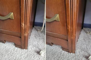 We hope you love our recommendations! While every product is independently chosen by our editors, BuzzFeed and our publishing partners may collect a share of sales or other compensation from the links on this page. You can read more about how our affiliate partnerships work in our Editorial Standards & Ethics Guide. You're gonna feel sooo much better after you clean, organize, or hide what's been bugging you. To apply, just unroll, position where you want it, sloooowly smooth it down with a credit card, and then trim the excess. Oh, and don't forget to wipe down the area you're covering first so it sticks. Promising review: "I absolutely loved this contact paper. It completely transformed my countertop. It was super easy to apply, and if I messed up, it was extremely easy to redeem myself. I did this alone with no help, and I’m pretty proud of the outcome. Took me about 30 min to complete it. I used the whole roll of the smallest option, and it was enough for me. Super awesome, and I will be buying more of this contact paper soon when I transform another room in my home! LOVE LOVE LOVE!!" —Mariah Get it from Amazon for $4.99+ (available in 11 sizes). Tibet Almond Stick is a small business based in Illinois. Promising review: "I recently got these Tibetan floor wax sticks, and they're like magic wands for your floors and furniture! Got a scratch? No problem. Just wave one of these sticks over it, and voilà — scratch be gone! It's like having a tiny wizard in your cleaning arsenal. These wax sticks fill in scratches on the floor and furniture like a charm. My floors and furniture look brand new, and I didn't even have to cast a spell. Highly recommend!" —b4komer Get it from Amazon for $12.99 (also available in a pack of two). The kit comes with markers, crayons for deeper scratches, and a sharpener. Tip: Some reviewers suggest applying the marker and then quickly wiping it with a paper towel to avoid over-applying. Promising review: "This product did a great job on my severely scratched wood flooring. I used it in a rental home and on our own floors. The markers did a great job on the wood flooring and there are several colors you can sort of mix and match to get the right shade. It dries with a slight shiny, waxy shine. Good value for the money! The wax pencils work OK, too, but the markers did fantastic. They didn't repair the wood but certainly hid some of the damage. To me, well worth the price." —Reviewer Get a set of six markers and six crayons for $9.88. It comes in an easy-to-use trigger spray and is ideal for cleaning bathtubs, showers, toilets, colorfast fabrics, vertical surfaces, and hard-to-reach spots. Plus, it's nonabrasive, and made with nonhydrofluoric acid–based formula, which is safer than other similar liquid rust-stain removers. Promising review: "Holy wizardry! Seriously it was more work to clean the mirror over the vanity than use this product. With almost no effort, this made my dark-orange, iron-water shower stall white again. I definitely suggest wearing a mask or bandana and running the ventilation fan if spraying in an enclosed area. Great product!" —Jessica B Promising review: "I've been searching for something to remove the weeds for a while and came across this amazing tool. Since I refuse to use chemicals in my yard, I've been left with scraped knuckles every time I attempt to remove weeds. The weeds have grown so tightly in the concrete cracks that I pretty much gave up; even weed-whacking it didn't help much. Yes, you do have to use a little bit of effort but the end result was so worth it!" —Shelley Arakaki Promising review: "Changed the oil on my girlfriend's car and some oil spilled on my NEW driveway...which I didn't notice 'til four days later. Four spots all about the size of a dollar bill baking in the Arizona sun for four days. Put the stuff on (sits on the stain like pancake batter — don't be afraid to pour liberally) and let it sit from 6 p.m. 'til about 9 a.m. the next day. It dried and the instructions said to just sweep the stuff up. It broke apart with the broom and the stains were gone, just swept up the powder pieces — took about a minute. I WAS SHOCKED! Something that actually works on oil and it's easy. Absolutely NO sign of anything that was there. My driveway is smooth concrete so I can't vouch for what would happen with a rougher surface but whoever makes this stuff is a genius. If they tried to take on World Peace, Earth would be a better place." —AmazonBob Get it from Amazon for $17.97 (also available in a larger size). The kit comes with a ceiling mount, Tulip shade, 12 removable tape strips, and three screws (as needed for textured ceiling applications). Tulip is a small business from Lori Smyth. Check out the different styles and how easily they install via Tulip's TikTok. BuzzFeed editor Chelsea Stuart has and loves this light cover. She says, "I just had a chance to try one of these, and I am simply OBSESSED. I live in NYC in a rental, and I have a really drab light in my kitchen that even an electrician couldn't get off of the ceiling without breaking... so I gave up on replacing it right after I moved in. Alas, fast forward a year, and I found Tulip on TikTok! Instantly, I thought 1. This is absolutely genius, and 2. How has no one come up with this before?!?! 'Installing' it (installing makes it seem way more involved than it is) took all of 10 minutes and that includes removing it from the box, Command Strip-ing the ring to the ceiling, and then popping the magnetic shade in place. (Honestly, the thing that took me the longest was fishing my step stool out of the depths of my junk closet.) Not only is the shade itself beautiful, but the diffused light is just so soft and pretty. I can't wait to get another one for my entryway!!!" Promising review: "I have been searching for a paper lamp or replacement for my current apartment lights, but they either wouldn't fit or it would require too much effort that