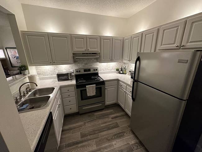 We hope you love our recommendations! While every product is independently chosen by our editors, BuzzFeed and our publishing partners may collect a share of sales or other compensation from the links on this page. You can read more about how our affiliate partnerships work in our Editorial Standards & Ethics Guide. But you can't stay mad at me now that you've learned about your new fave decor piece — the scratch off map. Promising review: "Literally one-step setup. Just slide the hanger onto the back of the container, then you load your trash bags. So simple it’s mind-blowing. It brought a lot of joy knowing I now have a space for trash bags and can put them away/out of sight." —Mags Get it from Amazon for $36.79 (also available in two other versions). Promising review: "This burner is perfect. Elegant and warm. It has a soothing, smooth design and provides a pleasant aesthetic. It was packaged very well with custom-cut closed-cell foam, indicating the vendor took care. Good value, wonderful design, large enough to place sticks or cones, but small enough for tiny spaces. I will be buying more." —Tordenavaer Ravenshield Get it from Amazon for $19.99+ (available in nine styles). Promising review: "Beautiful. This is great quality, and it looks like a real painting. 💗" —Yana Cucias Get it from Amazon for $15.99+ (available in four sizes and a variety of styles). Promising review: "My old Crock-Pot, while functional, was just too much for me. This one is great for one person, and I really think it could work for a couple. The inner liner separates and is dishwasher safe (VERY important to me). The lid cleans off easily in the dishwasher, too. There's a pilot light to let you know it's on. And the color looks great with my turquoise appliances. A nice little item." —Scooterboy Get it from Amazon for $14.99+ (available in five colors). No electrician required, thanks to those plugs. This set is designed so you can easily add or remove as many lights as you need, depending on how long your counter is. Use a Command Strip to put the remote control's included bracket on the wall or the side of the fridge (or wherever makes sense to you), and you can use it like a light switch to easily turn the remote control on and off! Promising review: "These puck lights are awesome and look great in my kitchen! They're plenty bright. I did warm white, and it's perfect. I ran most of the wiring through the cabinets since I did it both above and below the cabinets, but it wasn't difficult. I did have to run one wire across the top of the backsplash tile, but it's not noticeable now that I secured it better. Highly recommend!" —cls Get it from Amazon for $38.21+ (available in warm white or cool white). The tiles are water-resistant and washable. To apply, just peel the backing and stick to a clean floor. You don't need any special tools or even grout. Promising review: "I've only had these on my bathroom floor for a month or so, but they seem like they'll hold up. They were a bit of a pain in the ass to cut, but I didn't have the best tools or patience. The price is incredible for how good these look! They really transformed the room for cheap." —Jenascia Promising review: "Beautiful addition to any room as it adds a textile splash of elegance where before there was none. Hygge!" —ryan lager Get it from Amazon for $45.50+ (available in 10 styles). BuzzFeed Shopping writer Sally Elshorafa has this and says, "This product SAVED MY SHOES! I had an awkward set of built-in shelves in the closet of my old apartment, and it was the only place I wanted to put my shoes. As you can see from the before pic (above), it was a big mess; my shoes were piled on top of each other and getting really dirty. Traditional shoe caddies or boxes didn't really work because there's not much horizontal space, so I tried the Shoe Slotz. It fixed the problem perfectly! Because the design smartly stacks one shoe on top of the other, you save 50% of the space you'd normally use to store your shoes." Get a 10-piece set from Amazon for $34.99 (also available in a 20- or 40-pack). Promising review: "This lamp elevated my room instantly. Love the design, color, and craftsmanship. Such a lovely piece to have in your room." —Srisha Baniya Get it from Amazon for $45.99+ (available in five colors and a pack of two). Promising review: "This might be the best piece of furniture I’ve ever bought. Originally purchased for my living room, but it was just overkill, as far as me thinking all light furniture was a good idea. So, I moved it into my bedroom, which I’ve yet to decorate, and it truly elevated the space. Might just be the bouclé, but the ottoman is sooo nice to look at. The thing that I love most about it is the hardware that attaches the base to the lid allows you to place the ottoman flush against a wall as the lid opens inward…. Not something I’ve seen with another ottoman, but it’s that small attention to detail that REALLY makes me love this. My NYC apartment is tiny, so saving an inch of space actually has an impact, haha!" —Bradley C. Get it from the Article for $199+ (available in two fabrics, three sizes, and three colors). Promising review: "As a single person, one of my biggest challenges is cooking. I prefer to make larger quantities — usually in my Instant Pot — and then portion them into serving sizes and freeze them. Trying to freeze a lot of containers took up too much space, so I decided to try freezer bags. Since it was a mess to put servings into bags, I ordered these bag clips to help, and they do. I mostly use sandwich-size baggies, which fit well, and the stands hold the bag open so I can add the food. Then it is easy to freeze the bags flat for future use." —cymart Get it from Amazon for $11.99+ (available in different pack sizes). Promising review: "This is a very nice item that I am using in my small Florida apartment to enhance my decor since my hobby is growing indoor houseplan