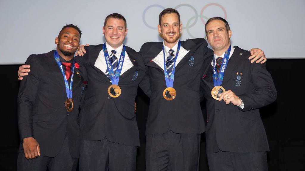 Winter Olympics medallist Joel Fearon has competed for Great Britain, Switzerland and Jamaica across bobsleigh and athletics "The fastest man in the UK this year and he's not even going to the Olympics." That was the line belted out by the commentator as Joel Fearon stunned onlookers by running the 100m in under 10 seconds - breaking one of the most revered barriers in sport. Frustratingly, the performance came just after the cut-off date to qualify him to represent Team GB at Rio 2016. A decade on, the 37-year-old is at his third Winter Olympics, but his first for Jamaica's bobsleigh team, who he came out of retirement for last year. He remembers that day in 2016 as one that changed his life. "I don't know if I ever believed that I could do something like that," he told BBC Local Radio. "It was surreal for a long time because I wasn't one of the British superstar sprinters. "But there I was, running sub-10, number one in the country and I remember thinking anything can happen." Only four British men have ever run faster on UK soil than his time of 9.96 seconds to win the England Athletics Championships in Bedford that day. Running fast was just one piece of the jigsaw for Coventry-born Fearon, as he was trying to make ends meet, juggling between work and bobsleigh training. "I've done all sorts of jobs, at one point, I was a pizza delivery man," he recalled. "I would run Diamond Leagues in the daytime. In the evening, I'm off delivering my local pizzas, just whatever needed to be done." Joel Fearon, Adam Gemili and Harry Aikines-Aryeetey ran against each other at the 2013 London Diamond League before joining up with the British relay squad at that year's World Athletics Championships Athletics was Fearon's first sporting passion, but his bobsleigh career has been unique. He has competed for Great Britain, Switzerland and Jamaica over a period of 15 years. His bronze medal from the Sochi 2014 Olympics was only awarded five years later because of retrospective doping bans. The sport was initially suggested to him by his coach, partly to help support his family. "I was pretty broke and some trials came up," Fearon explained. "It was a tough transition, there is a lot of lifting, you are a mechanic and there are a lot of long hours and time spent out in freezing cold conditions. "If I didn't hold out [on] those rough days, I would have never known what was coming in the future." Welsh bobsleigher Moore makes Olympics for Jamaica How British skeleton came back fighting after 2022 Winter Olympics athletes to have broken medals fixed Winter Olympics 2026 Milan-Cortina, February 6-22 Fearon initially came fifth in the four-man bobsleigh in Sochi, and with hindsight, he would not change the way it happened. "We knew we were good enough. Knowing that we didn't [medal] actually just kept me striving," he said. "I went straight to a relay camp. I didn't soak it in, didn't even enjoy it. "If I would have got that medal, I probably wouldn't have run sub-10. I wouldn't have had the same drive." At the time Fearon received it, he was on a season-long loan to Switzerland's bobsleigh team, with whom he won another bronze at the Europe Cup. "They bought me, actually. They needed experienced athletes for one of their junior drivers, Timo Rohner," he remembered. "We were the Swiss number one team that year. [Rohner] is at the Olympics with me [at Milan-Cortina], that's nice because this is his first Olympics and I had a little part in his journey." Joel Fearon, Bruce Tasker, Stuart Benson and John Jackson were retrospectively awarded Winter Olympic bronze medals in 2019 Like many athletes, Fearon's career has been affected by agonising injuries at key moments. He has wires in his lower leg bones holding them together, following a serious one picked up while running for the British relay team. "After that, I semi-retired from athletics, I still went and did a few things, but it wasn't the same," he said. "It took a good two-year chunk out of my athletic career." But while that pain eased over time as he recovered, what hit his family next was hard to put into words. In 2023, his sister Natasha Morais was murdered. Feeling scared and suffering with insomnia, Fearon retired from all sport. "It was tough for all of us. We are all still dealing with it in our own ways," he said. "I didn't think I was ever going to be able to do sport again. I really struggled with anxiety. "I was becoming afraid to leave my family alone." Coming out of retirement to represent Jamaica has given Fearon fresh focus and brought joy to a grieving family. But he did not necessarily expect to be pushing a sled at another Winter Olympics. "It was an athlete and coach role, I can do all the jobs across bobsleigh, even just organisational jobs," said Fearon, who met rapper Snoop Dogg while training in Italy. "But we ended up getting in the sled. I've done six races and won six races, so I'm a pretty good lucky charm. "I think they're going to have me pushing a few more times before I'm done," he joked. Fearon's father is Jamaican, while his maternal grandparents are also from the Caribbean island. "My dad was so proud. I've never seen him excited about sport before," he added. "I didn't even know these guys a year ago and they're all like my brothers, I get more excited about them racing than I do myself racing. "I'm probably taking on a dad role. Seeing how much they're excelling, it's just really exciting for me to watch and wonder where it could go." Another former GB sprinter, Mica Moore, led Jamaica's bobsleigh team through the opening ceremony in Milan-Cortina The crossover between Fearon's two sports is a well-travelled path. Fellow sprinter and bobsleigher Mica Moore is also part of Jamaica's squad in Milan-Cortina, having previously switched allegiance from Great Britain. Four years ago, Montell Douglas became GB's first female summer and Winter Olympian, while this year, track and field internationals Adele Nicoll and Ashleigh N