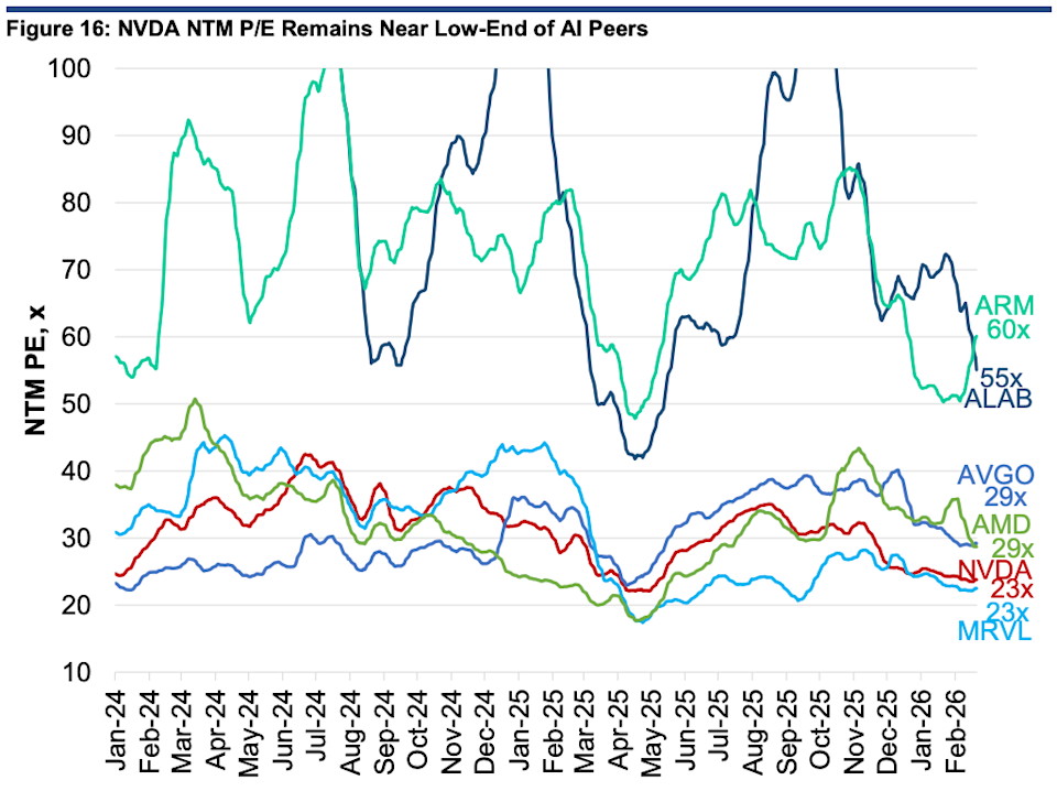 When you see the stock of the company at the epicenter of the AI boom trading at super-low valuations, it's cause to sit up in your seat. That's where I am on Nvidia (NVDA) ahead of its much-anticipated earnings report on Wednesday. Call it a state of pre-earnings shock. At less than 24 times estimated forward earnings, Nvidia is trading not far from its lowest price-to-earnings (P/E) multiple in five years. It's also well below its five-year average of roughly 38 times. And as they say in showbiz: But wait, there's more (see charts below). Nvidia's P/E ratio remains near the low end of its peers in Big Tech: And going back farther, Nvidia's stock is trading on a P/E ratio at steep discounts to its nine-year median: So the question here is, why does the stock trade at these "low" valuation levels? It can be boiled down to three factors. One, Nvidia's valuation has compressed despite record fundamentals because investors are repricing the duration of AI spending rather than questioning its existence. Two, Nvidia is navigating a major transition from Hopper HGX systems to Blackwell chips β this brings near-term margin pressure that shows up in earnings growth rates. An analysis by Yahoo Scout reveals Nvidia's earnings per share in fiscal year 2026 could grow 57% year over year. If that were to happen, it would be far slower than 2025's growth rate of about 145%. The third factor is the law of large numbers, Evercore analyst Mark Lipacis explained. "Nvidia's weight in the S&P 500 Index (^GSPC) is 7.4%, higher than allowed by the charters of many fund managers. So, while we expect Nvidia's fundamentals to be better than the broader market, there is a headwind to its P/E ratio caused by fund managers obligated to lower their stakes in the stock as it appreciates faster than the market," Lipacis said. In the end, it will be an interesting Nvidia earnings day. Wall Street expectations are high, but the stock looks cheap. Any miss on those expectations, however, and one could definitely expect Nvidia's stock to get even cheaper. Brian Sozzi is Yahoo Finance's Executive Editor and a member of Yahoo Finance's editorial leadership team. Follow Sozzi on X @BrianSozzi, Instagram, and LinkedIn. Tips on stories? Email brian.sozzi@yahoofinance.com. Click here for the latest technology news that will impact the stock market Read the latest financial and business news from Yahoo Finance