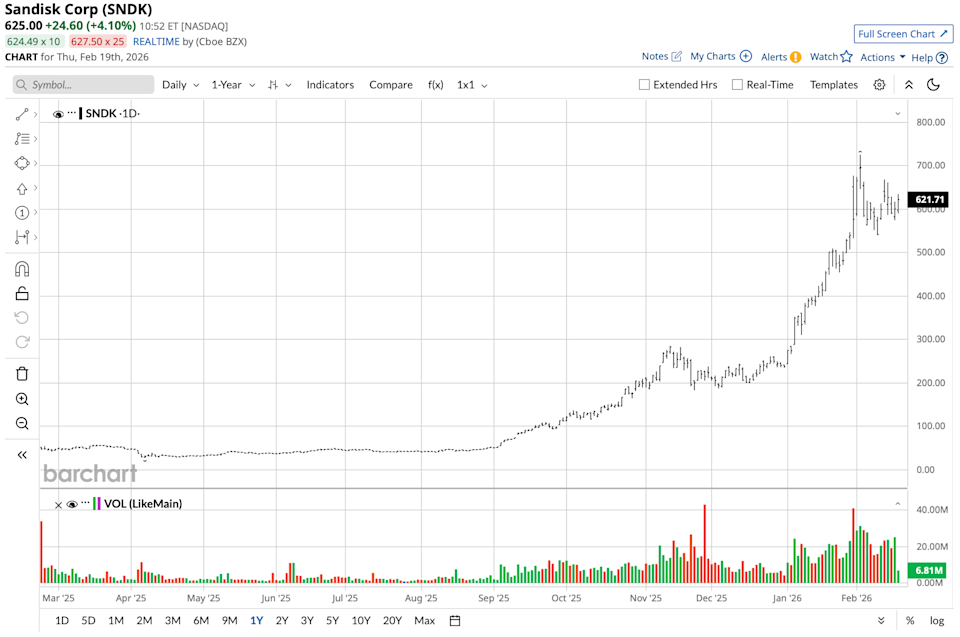 Stanley Druckenmiller’s Duquesne Family Office made headlines with its latest 13F filing. The fund initiated new holdings in the financial space, including Goldman Sachs, and exited existing holdings like Sandisk (SNDK). The filing comes at a time when the stock in question, Sandisk, is rallying to new highs following its blockbuster earnings report that has rekindled interest in the memory and AI storage space. The timing of the sale by Duquesne Family Office couldn’t be worse, especially since the fund exited its position in the most recent quarter. The stock has since turned in one of the most remarkable turnarounds in the semiconductor space, driven by the accelerating AI infrastructure spend and the sharp rebound in enterprise SSD spend. If Palantir is Near a Bottom, What's the Best Play in PLTR Stock? NVDA Earnings, Tariffs and Other Key Things to Watch this Week Adobe (ADBE) Stock Has Been Beaten Up But the Smart Money Remains Resilient Get exclusive insights with the FREE Barchart Brief newsletter. Subscribe now for quick, incisive midday market analysis you won't find anywhere else. Sandisk is a leading flash memory storage solutions company that caters to the data storage and memory markets. Headquartered in Milpitas, California, the company currently has a market capitalization of about $95.9 billion. SNDK stock has been highly volatile in the past 52 weeks, ranging from a low of $27.89 to a high of $725. Shares currently trade at about $650, climbing rapidly on the day following the recent earnings report. From a valuation perspective, Sandisk stock currently trades at a forward price-to-earnings (P/E) multiple of 27 times, compared to a trailing P/E multiple of 101 times, driven by depressed earnings in the past and improving earnings in the future. The stock also currently trades at a price-to-sales (P/S) multiple of 12.46 times and a price-to-book value multiple of 8.9 times, suggesting that improving earnings and improving gross margins are factored into its valuation, and that the compression in forward earnings estimates may make the stock more reasonable than the trailing numbers suggest. Sandisk reported revenue of $3.03 billion in the fiscal second quarter of 2026, a 31% increase from the previous quarter and a 61% increase year-over-year (YOY). GAAP diluted EPS came in at $5.15, a dramatic improvement of 587% from the previous quarter and a wide increase of 615% YOY. Non-GAAP diluted EPS came in at $6.20. The key driver in Sandisk's report was its gross margin, which expanded to 50.9% from 29.8% in the previous quarter. Operating income saw a greater than 500% increase from the previous quarter. Data center revenue increased 64% from the previous quarter, driven by high adoption rates from AI infrastructure builders and enterprise SSD customers. Looking forward, Sandisk estimates fiscal Q3 revenue to be between $4.4 billion and $4.8 billion. Non-GAAP diluted EPS is expected to be between $12 and $14, a staggering increase from the previous quarter and a wide increase from the same period in the previous year. Gross margins are expected to continue to expand to as high as 67%. The company is seeing a structural reset in supply, according to CEO David Goeckeler. This bodes well for Sandisk, as the firm will be able to benefit from this trend in AI and enterprise infrastructure. Sentiment on Wall Street remains positive. Sandisk enjoys a “Moderate Buy” consensus rating, with analysts having a positive outlook as a result of the rebound in earnings. While the mean price target of $700.94 indicates potential upside of 8% from current levels, the highest price target of $1,000 points to 54% potential upside while the lowest target of $235 points to 64% potential downside. The range of these targets points to the cyclical nature of the company's business. While investors are considering Druckenmiller’s exit as a negative signal for Sandisk, it is evident that the company has moved from being a story of recovery to one of execution. The upcycle in memory and AI-driven storage demand evidently has legs to run, with both forward earnings and margins expanding materially. On the date of publication, Yiannis Zourmpanos did not have (either directly or indirectly) positions in any of the securities mentioned in this article. All information and data in this article is solely for informational purposes. This article was originally published on Barchart.com