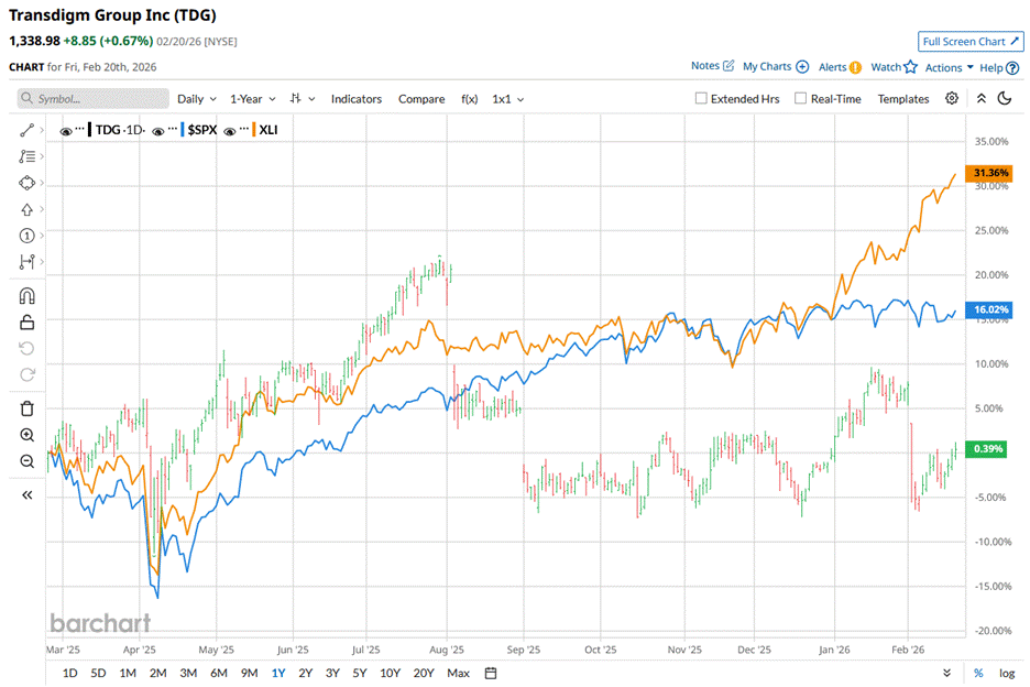 Cleveland, Ohio-based TransDigm Group Incorporated (TDG) is a leading global designer, producer and supplier of highly engineered aircraft components for use on commercial and military aircraft. Valued at a market capitalization of $75.6 billion, TDG’s major product offerings include mechanical/electro-mechanical actuators and controls, ignition systems and engine technology, specialized pumps and valves, power conditioning devices, specialized AC/DC electric motors, and more. TransDigm Group's shares have underperformed the broader market over the past year and have matched in 2026. TDG stock has grown 2% over the past 52 weeks and marginally on a year-to-date (YTD) basis. In comparison, the S&P 500 Index ($SPX) has returned 13% over the past year and grown marginally in 2026. If Palantir is Near a Bottom, What's the Best Play in PLTR Stock? NVDA Earnings, Tariffs and Other Key Things to Watch this Week Adobe (ADBE) Stock Has Been Beaten Up But the Smart Money Remains Resilient Stop Missing Market Moves: Get the FREE Barchart Brief – your midday dose of stock movers, trending sectors, and actionable trade ideas, delivered right to your inbox. Sign Up Now! Narrowing the focus, TDG stock has underperformed the State Street Industrial Select Sector SPDR ETF’s (XLI) 28.6% rise over the past 52 weeks. On Feb. 3, TDG shares fell 9.3% following the release of its Q1 2026 earnings. The company’s revenue came in at $2.3 billion, topping Wall Street estimates. Moreover, its adjusted EPS amounted to $8.23, also coming on top of the Street’s estimates. However, the company failed to surpass the consensus estimates on its organic revenue front, leading to a loss in investor confidence. For the current year ending in September 2026, analysts expect TDG's EPS to decline marginally YoY to $35.64 on a diluted basis. The company’s earnings surprise history is mixed. It surpassed the consensus estimate in three of the past four quarters, while missing it once. Among the 22 analysts covering TDG stock, the consensus is a “Moderate Buy.” That’s based on 14 “Strong Buy” ratings and eight “Holds.” The configuration has grown somewhat bearish in recent months, with the stock now carrying 14 “Strong Buy” ratings, down from 17 just one month ago. On Feb. 4, UBS analyst Gavin Parsons maintained a "Buy" rating for TransDigm Group and lowered its price target from $1804 to $1800. The mean price target of $1,589 indicates just a 18.8% upside potential to TDG’s current price levels. Its Street-high target of $1,900 suggests the stock could rise as much as 41.9%. On the date of publication, Sristi Jayaswal did not have (either directly or indirectly) positions in any of the securities mentioned in this article. All information and data in this article is solely for informational purposes. This article was originally published on Barchart.com