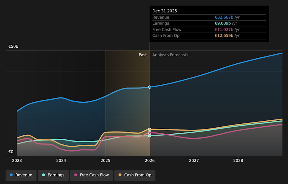 Find winning stocks in any market cycle. Join 7 million investors using Simply Wall St's investing ideas for FREE. ASML Holding (ENXTAM:ASML) reports a breakthrough in EUV lithography that can enable up to 50% higher chip production efficiency. The company says its latest EUV machines use a much more powerful light source to help customers process significantly more chips by 2030. This development reinforces ASML's position in advanced semiconductor manufacturing as competitors in the U.S. and China work on rival technologies. ASML Holding sits at the center of high end chip production, supplying EUV lithography tools that many chipmakers use for leading edge manufacturing. The new machine design directly targets growing demand for next generation AI chips, an area that has become a key focus across the semiconductor industry. For investors watching ENXTAM:ASML, the bigger question is how this technology shift could influence customer investment plans and the competitive gap with other equipment makers. The reported 50% efficiency potential by 2030 may shape long term capacity decisions across foundries and integrated device manufacturers that rely on EUV tools. Stay updated on the most important news stories for ASML Holding by adding it to your watchlist or portfolio. Alternatively, explore our Community to discover new perspectives on ASML Holding. 2 things going right for ASML Holding that this headline doesn't cover. This EUV light-source breakthrough goes straight to the economics of chip production. If a tool can process around 50% more wafers per hour without needing extra floor space or duplicate systems, it can change how customers such as TSMC and Intel think about their long term fab build outs. For ASML, that can translate into a stronger case for its most advanced EUV platforms as fabs push to supply AI and high performance computing chips. It also reinforces why ASML is often treated as a way to get exposure to AI chip demand without choosing a specific chip designer. At the same time, a more productive tool could slow the need for incremental units at the margin if customers can get more output from each system, so investors may want to watch how pricing, service and upgrade revenues evolve alongside unit volumes, especially as U.S. and Chinese equipment makers work on competing technologies. This EUV advance aligns with the narrative that ASML’s EUV and High NA platforms support productivity and cost reductions for chipmakers, which can support equipment adoption tied to AI demand. If High NA adoption timing or tool maturity proves more complex than expected, the focus on current generation EUV power gains could delay some of the earnings contribution that narrative writers associate with future platforms. The news puts more weight on ASML’s installed base and upgrade potential, which is mentioned in the narrative, but the specific impact of higher light output on long term service and upgrade revenue may not yet be fully reflected. Knowing what a company is worth starts with understanding its story. Check out one of the top narratives in the Simply Wall St Community for ASML Holding to help decide what it's worth to you. ⚠️ Geopolitical and export control risks around sales to China could still affect order flow, even if EUV technology stays ahead of U.S. and Chinese rivals. ⚠️ Higher tool productivity could change customer capex pacing and introduce uncertainty around unit shipment timing, especially if wafer fab equipment budgets are adjusted. 🎁 A near monopoly in commercial EUV systems, now with a reported move to 1,000 watt light output, strengthens ASML’s role in AI and advanced chip manufacturing. 🎁 Analysts have already highlighted growing earnings and revenue expectations for ASML, and this product update supports the idea that EUV platforms remain central to that growth story. From here, you may want to track how quickly leading customers qualify these higher power EUV tools in high volume production and whether order intake for EUV and High NA systems reflects that shift. Watch management commentary on how the upgrade path affects installed base revenue and whether any U.S. or Chinese competitors close the technology gap. It is also worth following regulatory updates on export controls, as changes there can influence where ASML’s most advanced tools can be shipped and how diversified its revenue base remains. To ensure you're always in the loop on how the latest news impacts the investment narrative for ASML Holding, head to the community page for ASML Holding to never miss an update on the top community narratives. This article by Simply Wall St is general in nature. We provide commentary based on historical data and analyst forecasts only using an unbiased methodology and our articles are not intended to be financial advice. It does not constitute a recommendation to buy or sell any stock, and does not take account of your objectives, or your financial situation. We aim to bring you long-term focused analysis driven by fundamental data. Note that our analysis may not factor in the latest price-sensitive company announcements or qualitative material. Simply Wall St has no position in any stocks mentioned. Companies discussed in this article include ASML.AS. Have feedback on this article? Concerned about the content? Get in touch with us directly. Alternatively, email editorial-team@simplywallst.com