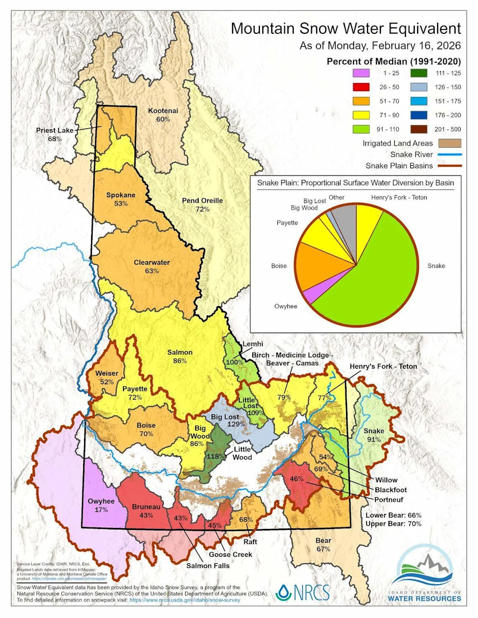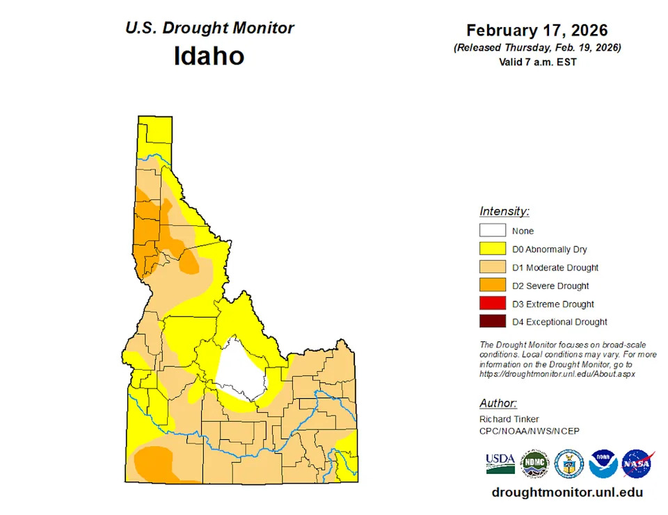 Idaho’s warm winter weather has brought on one of the most severe snow droughts in state history. Record-high winter temperatures have been paired with “significant precipitation,” according to David Hoekema, a hydrologist with the Idaho Department of Water Resources,. So far this season, the Gem State has seen unexpectedly large amounts of rain and unseasonably low snowfall, Hoekema told the Idaho Statesman. That’s prompted experts to declare a snow drought, which happens when the levels of snow water equivalent — the amount of liquid water contained in snow — in a region are at or below 20% of historical data averages. Here’s what that means for Idaho residents: According to one expert, Idaho weather conditions in 2026 are comparable to those during two significant drought years: 1977 and 2015. In 1977, drought conditions across the West caused wells to run dry as early as April and reservoir water levels to reach record lows, the Idaho Statesman reported at the time. The “significant economic losses and human suffering” caused President Jimmy Carter to sign the Emergency Drought Act into law. In 2015, low snowpack and early runoff put all of Idaho in a state of drought. “The conditions this year are significantly different than 2015 in that we have had significant precipitation and have a strong high-elevation snowpack,” Hoekema told the Statesman. “This year is a combo of 2015, which was hot and dry, and 1977, which was a year with what was likely the lowest snowpack in our lifetimes.” Idaho also saw extreme drought conditions in 2021 and 2022. About 95% of Idaho was “abnormally dry” or worse as of Feb. 17, according to the most recent data available from the U.S. Drought Monitor. Nearly 62% of the state was experiencing “severe drought” conditions, while about 9% of severe areas were under an “extreme” drought, the drought monitor said, adding that drought conditions can lead to low crop yields, water shortages and “elevated” risks for wildfires. A total of 836,524 people in Idaho were living under drought conditions, the drought monitor said. Part of the Gem State has been affected by some level of drought since December 2019, according to U.S. Drought Monitor data. Historically, Jan. 10 through Feb. 14 is the period of greatest snowpack growth in the Pacific Northwest, including Idaho. During that time in 2026, the Pacific Northwest has experienced its warmest period on record, particularly at higher elevations, according to Larry O’Neill, Oregon climatologist with the National Integrated Drought Information System. “January 2026 featured an intense and long-lasting ridge of high pressure which diverted storms away from the Pacific Northwest and caused strong inversions,” O’Neill said at a National Integrated Drought Information System conference on Monday. “The mountain snowpack in nearly every basin of the Pacific Northwest is well below normal.” However, the snowpack is still strong in some of Idaho’s higher-elevation mountain ranges. “The Upper Snake (River) is following climatology over the last week and the Big Lost (River) is nearly to a full annual snowpack,” Hoekema told the Statesman in an email. A wet spring season can only reduce the lasting effects of the snow drought, not end them, according to Hoekema. With enough precipitation over the coming months, the Upper Snake River may receive enough water to “reduce drought impacts to minimal on the Boise and Payette” rivers, Hoekema said. Drought is anticipated to be extreme across the southern border of Idaho, even with heavy precipitation in the spring. The Bruneau, Owyhee and Weiser river basins “are not going to recover from drought this year,” Hoekema said, nor are the Goose Creek and Salmon Falls Creek Reservoir basins in south central Idaho. The hydrologist added that the Payette and Boise river basins have only a 10% chance of recovery. “A wet spring or cool summer could greatly reduce shortages,” Hoekema said. “A hot and dry spring and summer could produce significant shortages.” “At this point we are mostly concerned about the severity of water shortages,” Hoekema said. Drought can have significant impacts on irrigation, which in turn affects Idaho agriculture and residents. In past drought years, irrigation districts have shut off water early or urged water users to implement a watering schedule to limit their consumption. Idaho Water Users Association officials have told the Statesman in the past that farmers will plant fewer crops during drought years in anticipation of water shortages or perhaps choose less lucrative crops that are less water intensive. Drought conditions also impact wildfire conditions, as dry vegetation can become prime fuel to feed fast-moving blazes. It’s too early for fire officials to forecast how current drought conditions may impact the coming fire season, according to Sharla Arledge, spokesperson for the Idaho Department of Lands. The agency handles fire suppression on state endowment lands. The Boise-based National Interagency Fire Center, which coordinates wildfire response across multiple federal agencies, has “significant wildfire potential” maps with predictions through May. While the National Interagency Fire Center’s maps show significant fire potential in other drought-stricken areas such as Florida and Texas, Idaho is not flagged for significant wildfire potential through May. Idaho’s snowmelt usually peaks around the same time that fire season begins. “Snowmelt typically begins slowly in March, ramps up in April and then peaks in May or June depending on the elevation of the basin and the springtime temperature,” Hoekema said. This year, Idaho may experience a change in the timing of the state’s typical snowmelt patterns. “We might see a slower increase in runoff since the low elevation snow is mostly missing,” the hydrologist said. “Timing will depend on springtime tempera