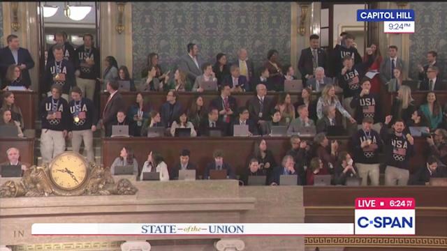 The MAGAverse was outraged early in President Donald Trump’s State of the Union address on Tuesday evening by what they perceived as an insult to the U.S. men’s hockey team. Many attendees stood and cheered loudly, applauding the Olympic gold medalists; chants of “USA! USA!” rang out as the athletes entered. Some of the president’s supporters online were quick to note, however, that not everybody in attendance stood to applaud, with several rushing to point the finger at Democrats, including the president himself.