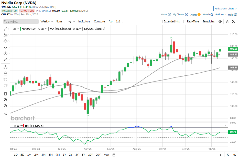 Nvidia (NVDA) delivered an exceptionally strong fourth quarter, beating expectations on both revenue and profit. Top-line growth accelerated from prior quarters, and earnings surged as demand for its artificial intelligence (AI) chips continued to expand across multiple markets. Nvidia’s revenue growth is being driven primarily by its data center segment. Demand remains robust across a broad customer base that includes hyperscalers, major cloud service providers, AI model developers, large enterprises, and even national governments building sovereign AI infrastructure. 3 Highest Rated Dividend Kings for Generations of Income As Nvidia Launches New AI Laptop Chips, Should You Buy NVDA Stock? GE Aerospace Is Linking Up with Palantir. Should You Buy GE Stock Here? Stop Missing Market Moves: Get the FREE Barchart Brief – your midday dose of stock movers, trending sectors, and actionable trade ideas, delivered right to your inbox. Sign Up Now! A key catalyst has been Nvidia’s next-generation Blackwell architecture, which is witnessing strong adoption. Further, management guided for continued sequential revenue growth throughout calendar 2026. That outlook signals that demand isn’t slowing. Importantly, AI infrastructure investment from large cloud providers and hyperscalers, which together account for over half of its data center revenue, has increased materially, indicating strong growth ahead. Nvidia’s stronger-than-expected Q4 performance against elevated expectations, diversified demand, increasing AI infrastructure spending, and upbeat forward guidance strengthens its investment case and indicates further upside in the stock. Nvidia is set to deliver solid growth ahead and offers strong visibility into future revenue, driven largely by continued demand for AI infrastructure. In the fourth quarter, Nvidia generated $68 billion in total revenue, a 73% increase from the same period last year. Growth also accelerated from the prior quarter, with the company adding $11 billion in incremental data center revenue sequentially. The data center segment remains the core engine. Fourth-quarter data center revenue reached $62 billion, up 75% year-over-year (YoY) and 22% sequentially. Demand has been especially strong for Nvidia’s Blackwell architecture and the newer Blackwell Ultra systems, which are designed for large-scale AI training and inference workloads. As more companies deploy AI models into real-world applications, the need for inference computing power is rising alongside traditional training demand. The broader shift toward accelerated computing continues to support Nvidia’s outlook. Hyperscale cloud providers are embedding AI into existing services, and enterprises are deploying more advanced, multimodal AI systems. Applications such as agentic AI systems and physical AI used in robotics and automation are beginning to contribute meaningfully to revenue. These trends suggest that AI adoption will remain strong, supporting Nvidia’s investment case. Nvidia expects revenue to continue rising quarter after quarter throughout calendar 2026, surpassing the projections tied to the $500 billion Blackwell and Rubin revenue opportunity it outlined last year. Importantly, the company has secured supply commitments and inventory to support demand that already extends into calendar year 2027, which provides visibility into future growth. Another emerging growth driver is sovereign AI. Governments around the world are investing in domestic AI infrastructure to support national competitiveness and data sovereignty. In fiscal 2026, Nvidia’s sovereign AI-related revenue more than tripled YoY to exceed $30 billion. As more countries allocate capital to AI infrastructure, this segment could become an increasingly significant contributor. For the first quarter, Nvidia expects revenue of approximately $78 billion, up 77% YoY, with data center sales again accounting for the majority of the growth. Further, analysts project Nvidia to report earnings of $1.55 per share in Q1, up 101.3% YoY. Rising demand, the rapid expansion of AI applications across industries, and long-term supply agreements together create a strong foundation for Nvidia’s continued growth in the coming quarters. These factors will likely provide meaningful support to its share price. Nvidia has climbed more than 41% over the past year, reflecting strong investor confidence in its growth trajectory. Despite that run-up, the stock’s valuation remains relatively attractive. NVDA stock is trading at a forward price-to-earnings ratio of 27.2, which appears reasonable given analysts’ expectation that earnings per share will grow by 59.5% in fiscal 2027. Wall Street’s average price target for NVDA stock stands at $255.34. Compared with its closing price of $195.56 on Feb. 25, this implies roughly 31% potential upside over the next 12 months. Analysts overall continue to rate the stock a “Strong Buy.” On the date of publication, Amit Singh did not have (either directly or indirectly) positions in any of the securities mentioned in this article. All information and data in this article is solely for informational purposes. This article was originally published on Barchart.com