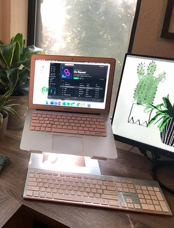 We hope you love our recommendations! While every product is independently chosen by our editors, BuzzFeed and our publishing partners may collect a share of sales or other compensation from the links on this page. You can read more about how our affiliate partnerships work in our Editorial Standards & Ethics Guide. From a cushy cloud wrist rest to a USB-charging monitor riser, these little additions can make your workday more comfortable *and* productive. Whether you're new to working from home or have been a remote worker for years, you may not have invested much into your personal WFH space — after all, you're just there to log on and get your work done. But it's worth it to upgrade your home office situation and make it more comfortable, organized, and even cute, since it is part of your home, and it can even help boost your productivity at work. We're talking desk organization, ergonomic upgrades, and, yes, aesthetic additions that'll give you a jolt of serotonin every time you sit down to work. This stand fits any laptop from 10–15.6 inches and can be easily disassembled into three parts for easy transportation. Promising review: "This has helped my neck pain and workflow. I'm used to working in an office with monitors, and this made a big difference in my work-from-home experience by putting my screen at a comfortable eye level. The material is good quality, feels sturdy, and was simple to assemble. It comes in three pieces and is intuitive to put together without looking at directions. There are pads on the top to keep your laptop from sliding. I'm using it with a 15-inch laptop, and it's a good fit. I did get a wireless keyboard to use with it, which I would recommend. If you were to try to type on your laptop keyboard with this, it would be uncomfortable. I bought it for the ergonomics, but as a bonus, I am liking how it helps me keep my desk organized with the extra space beneath. Great product!" —M Get it from Amazon for $15.29+ (available in nine colors). This whiteboard also comes with a dry-erase marker, accessory channel (to hold the marker), and a storage drawer. Promising review: "Never thought something analog would be SO useful in my daily routine. I work from home and am constantly project managing a number of complex strategic projects. Having pertinent information directly in front of me and top of mind has done incredible things for my productivity. Never would have imagined it would make such a difference. For a nominal investment, I highly recommend it if you have trouble keeping up with things." —Captainflapjax Get it from Amazon for $27.16+ (available in four styles). It has two HDMI ports — be sure to pick up a USB-C hub if you're planning to connect a MacBook. Promising reviews: "If you work from home, you must have this in your life! Super easy to set up, great packaging, great quality, great price. I absolutely LOVE this!" —RR "Just set this monitor up, and so far it’s earned all 5 stars! It was easy to assemble, it’s compatible with my MacBook Pro (with a USB-C adapter), and the picture is great! I just wanted another monitor for when I work from home, so having something available that was affordable like this was perfect for what I needed." —Allison H. Get it from Amazon for $77.97 (also available in four other models, including 27-inch options). Other things to keep in mind: Raising your laptop or monitor up to eye level makes for better ergonomics (i.e. reduced eye and neck strain), PLUS by lifting your screen up, you make more room on your desk for storage underneath the stand. Promising review: "This was just the thing I needed for my desk. Super convenient to have the wireless charger and the USB hub too. Very good for cable management. I really love having a stand that provides additional functionality. It's a clean design, maybe the logo is a bit large and white on black so it's quite noticeable (a shade of gray on black would be nicer), but that's OK. Great stand!" —T Get it from Amazon for $89.99+ (available in two sizes). Promising review: "This is possibly the best bang for your buck, and I cannot recommend this enough. After researching for months for well-priced, minimalist, user-friendly monitor stands, I found this and since using it, I love admiring and using it! I don't write reviews, but I am so blessed to have finally found a product in this category that is not $200+ for a couple cuts of wood like other brands. A built-in shelf and a stand were all I needed for under $100, and this item was perfect for me!" —Tonythat_tiger Get it from Amazon for $99.90 (available in three colors). You can also use this as a regular speaker for music and podcasts and the like, and hook it up using an AUX cord or an included dongle. Conveniently, it also has a button to mute and unmute yourself, so if you're using different video platforms (or your kid is online learning) it's easy to just mute yourself manually if you can't find the button right away on the screen. Promising review: "Once I started using it as my microphone during cam sessions on Zoom and other platforms, coworkers immediately noticed how much clearer it was to hear me. The speaker on this product sounds nice, making it more enjoyable to listen to conference calls. You can also play music through it, so it can quickly become a way to get a nice little stereo wherever you may be in your home or office when paired with your phone. This is a well-thought-out product with a lot of versatility. I can connect to it quickly through a variety of ways, such as Bluetooth, the included auxiliary sound cord, or the included dongle. It also comes with a USB cable, which can charge this device up quickly. I also like that it's all black with a slick design that looks good in my office. It has a slight weight to it, which helps to keep you from accidentally knocking it to the floor, yet is light enough that I can easily throw it in my briefcase." —J Promising review: "It is a