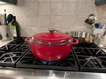 Promising review: "This Lodge Dutch oven is a real workhorse in the kitchen. The vibrant color is a nice touch, and it's surprisingly lightweight for cast iron. I've used it for everything from braising beef to baking bread, and it always delivers delicious results. The enamel coating makes cleanup a breeze, and I love that I can go straight from stovetop to oven without any fuss. Highly recommend!" —Tony Rosati