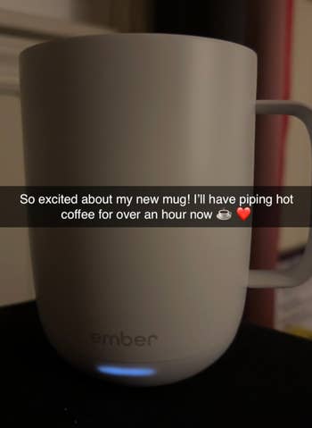 Promising review: "I got to sit for an hour this morning before work, with my dog on my lap, uninterrupted because I didn't have to warm my coffee every 20 minutes!! I’ve wanted a cup like this for a long time, but have heard they don’t really work, BUT THIS ONE DOES!! Worth every penny. ☕️❤️ Now back to my still-hot coffee." —M. Bretz