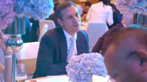 In the high-tech megacity of Shenzhen in southern China, Prince Andrew looked on as dancers spun and waved streamers to entertain an audience of investors and innovators. It was spring 2019, a gala dinner for the Chinese arm of his start-up competition Pitch@Palace β which turned out to be the last. Within a year, the then-prince would step back from royal life after a disastrous interview about his links with the convicted American sex offender, Jeffrey Epstein. There was a third man in this drama, little known to almost everyone, who was at the event, glimpsed in a brief shot in the official highlights video β David Stern. Warning: this article contains language and details that may offend some readers For nearly a decade, Stern had acted as a key conduit between the two, making connections for them both in the country he knew well, seen as a land of opportunity and potential riches β China. The publication of millions of pages of documents relating to Epstein by the US Department of Justice this year cast new light on this enigmatic German businessman. They suggest that it was Epstein who first brought Stern into the orbit of Andrew Mountbatten-Windsor and Sarah Ferguson, and reveal how deeply connected Stern was with both Yorks and the convicted American sex offender. They apparently show how he made introductions, passed on documents, pitched deals, helped to sort out Ferguson's debts, and made numerous derogatory remarks about women. "I stay in the background/hidden, just make the arrangements," he apparently wrote to Epstein in 2011, in one of those emails β and eight years later that's still how he worked. Stern has been approached for comment. He has not responded. His name appears in more than 7,000 of the DOJ's recently released files, from 2008 to 2018. Based in London for most of that time, Stern ran his own business, but he often called Epstein "boss". He appeared to ingratiate himself into royal circles too, becoming a director of Pitch@Palace in 2016, and being appointed to the board of a royal charity, St George's House. But he kept a low media profile, and little is known for certain about his background. His entries on Companies House say he was born in 1978. According to a short biography he apparently sent to Epstein, he studied Law and Chinese Law at the School of Oriental and African Studies in London. A person familiar with the matter said Stern had completed a three-year Law BA there in 2000, but withdrew from a postgraduate research programme in 2003. The biography says he is a fluent Mandarin Chinese speaker, and studied in Taiwan and China in the 1990s. He worked at a small investment banking firm, Ermgassen & Co, from 2000 to 2002. He then founded a Beijing-based IT healthcare business, Asia Gateway. He claims he sold a majority stake in the company to the UK publishing and events giant Informa in 2010, and continued to work for them. Informa confirmed to the BBC that it bought the stake, but said "no product ever came to market from this and the agreement expired in 2014". The earliest-known contact between Epstein and Stern came in May 2008, according to the DOJ files. They include a note to Epstein's personal assistant Lesley Groff, inviting him to invest in a "China-focused private equity fund". The relationship blossomed despite Epstein's guilty plea to a conviction for soliciting prostitution from a minor the following month. Over the next two years his emails were a stream of investment ideas and lewd references to women. Epstein, 15 years older, massively richer and deeply connected with elite circles in the US, is clearly the senior partner, with Stern coming across as the young student, always eager to impress. Many of the emails are variations of Stern asking "when can I call you?" Stern calls the American "my mentor", and even "my general". Epstein advises him on the sale of his healthcare business, and chides him for not being careful enough in checking out the background of a new contact. Stern keeps up a steady stream of references to women and sex, often using the abbreviation "P", which Stern apparently used to refer to women. It is believed to be an abbreviation of the word "pussy", a term Epstein often used. Epstein mostly fires back terse, business-like, poorly punctuated replies - if any. For instance, in 2009, Stern apparently describes a Beijing dinner at the house of a friend who made a "fortune in steel". "Entertainment during dinner were 5 girls on the dining table... while we ate. Welcome to the new china!" an email reads. In 2010, he appears to propose a visit to Little Saint James, Epstein's Caribbean island where many of his crimes against women were committed. "if i want action i come to LSJ - my friend J will have plenty of P for me...(so i hope!)," he writes to Epstein. It's not clear from the emails if he ever went. Correspondence in the DOJ files suggests that it was through Epstein that Stern was first introduced to the Yorks. In February 2010, an email from "Sarah" to someone identified simply as "A" reads: "I was introduced to David Stern by Jeffrey. He came to Royal lodge for dinner. He has been helping me a great deal with an ear and advice to my way ahead. He has a great roladex [sic] for China." Given the reference to Royal Lodge β Andrew's home in Windsor β it seems likely that it is from Ferguson. Stern then writes to "Your Royal Highness" saying "The Duchess" has asked him to get in contact, and asking how he "may be of help". That email doesn't specify what "matter" he's referring to, but since 2009, Stern, Epstein, and Sarah Ferguson had been engaged in a long and painful wrangle about her acute financial troubles. Ferguson appeared to ask Epstein for help with her debts, which she estimated at Β£6m, the emails suggest, and Stern took on the task of persuading her to try to figure out what she owes and to whom. In private, Stern and Epstein were extremely disrespectful to Ferguson. "Unbelievable what it t