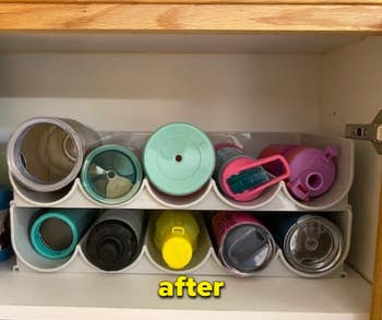 We hope you love our recommendations! While every product is independently chosen by our editors, BuzzFeed and our publishing partners may collect a share of sales or other compensation from the links on this page. You can read more about how our affiliate partnerships work in our Editorial Standards & Ethics Guide. I'm just here to save you from impending doom of your water bottles falling out of your cabinet and attacking you. Some folks also use this for wine bottles! Promising review: "I got this after being influenced by others on TikTok and am so glad that I did. These worked great for organizing and storing all my tumblers. It even fits my 30-ounce cups, although they don't sit all the way down into the opening; it still stores them. I could use one more of these in this cabinet to store the rest of my koozies and cups. I love the color, and these are made from thick, sturdy material that won't warp or break over time. So happy with this purchase!" —Heather Get a two-pack that holds 10 bottles from Amazon for $47.99. Promising review: "Before purchasing this spice organizer, I struggled with my kitchen cabinet — the deep shelves made it challenging to locate and access spices efficiently. This storage solution has transformed my spice storage. Its design allows me to maximize the cabinet's depth while ensuring every spice is visible and easily accessible. It has increased my usable cabinet space by creating a more compact and intelligent storage system. I will be buying more." —Troy Lubbers Get it from Amazon for $19.99+ (available in two sizes and two-packs). If spices are only part of your organizational problem, they can also be used to hold extracts, canned veggies, sauces, etc. Or you can use it in your bathroom cabinet/medicine cabinet or even on shelves for small collectibles — the possibilities are endless! Promising review: "So, as someone who loves to cook and bake, I have accumulated a plethora of spices and extracts. I was super tired of having to pull everything out of the cabinet just to get to the jar of sage I use maybe twice a year, or worse, buying a second bottle of something that was just playing hide-and-seek with me. These stairs have made organizing my spices easy, and they seem very well-made. I love that they also have non-slip silicone on the surfaces. I'm buying more to organize my makeup and nail polishes." —MeganFromTexas Get it from Amazon for $6.47+ (available in two lengths, two colors, and several pack sizes). Promising reviews: "Got this to organize my shot glasses in the display cabinet. Sturdy, easy to assemble, perfect size, and very clear, so you only see the shot glasses." —Al "These are such great quality! I’ve had others that ended up sagging in the middle, leaving me concerned my fragrances were in danger of breaking. My daughter had purchased these long before I purchased mine, and hers have held up beautifully. Although these were more expensive, you get what you pay for! I highly recommend these over other cheaper-made models for peace of mind that your fragrances will be safe!" —Tammy Caudell Get it from Amazon for $8.99+ (available in two sizes, two colors, and packs of one, two, or three). The organizer has five adjustable dividers so you can even sort lids by size or color. Promising review: "Oh, how I love this thing! This is one of those purchases where you say, "Why didn't I get this sooner?" Lids everywhere became lids right where I need them, and it's easy to find the correct lid! I got the medium, and it was just the right size for the number of lids I have to store. It fits right in my cabinet above the containers. I can easily remove the whole container if needed to find the correct lid and then just put it back with no lids falling out. Game-changer!" —Patti Such Get it from Amazon for $16.99+ (available in three versions, three sizes, and a pack of two). Promising reviews: "A must-have for organization and saving space. Went from taking up an entire cabinet to one shelf. They seem very sturdy and will hopefully last a long time." —Erin "We loved these containers and have now bought 20 to hold our entire game closet! We have been able to fit several games in some. Easy to store and easy for my kids to find and then put away when finished. Good quality, haven't had any problems with durability yet, and we play a LOT of games." —bradfieldfamily Get a pack of four from Amazon for $24.99 (also available in a pack of 10). Not only are these air-tight containers, but they are also stackable to create the perfect pantry, plus they are dishwasher safe! Promising review: "Love these — anything in my pantry that is not canned is now in these storage containers. Everything stays fresher, neater, and cleaner, and they even look neat on the shelves. I purchased the first ones more than a year ago — then bought another set of various sizes, then three more large ones for our cereals, etc. Even my husband, who can be a klutz, can open and close them without a problem — plus no spills, no cardboard boxes, no plastic inner packaging to contend with. Used for cereal, sugar, flour, snack bars, all kinds of pasta, etc." —L. Mx. Get an eight-piece set from Amazon for $39.99 (also available in other various sizes and quantities). Check out a TikTok of the Command spray bottle hangers in action. Promising review: "These are ideal for space saving and easy access. I put them on the inside of my kitchen cabinet under the sink. I hung a full bottle of Windex and another bottle of Meyer’s spray. No issues. Some command strips have failed me in the past, but these are great. I’ll be ordering more." —Dawnmarie Get a set of two from Amazon for $8.99 (also available in a pack of six). Promising review: "Totally bought these because of TikTok, but I love them! They are exactly what I never knew I needed. Very easy to set up and help keep my cabinets organized so I can always find what I am looking for right away without