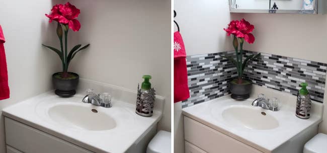 We hope you love our recommendations! While every product is independently chosen by our editors, BuzzFeed and our publishing partners may collect a share of sales or other compensation from the links on this page. You can read more about how our affiliate partnerships work in our Editorial Standards & Ethics Guide. Upgrading your home can feel like a lot of work, but these peel-and-stick tiles will easily transform your space in a snap. It took most reviewers less than an hour to completely revamp their desk, and it was two hours *tops* for others (depending on how much space you're redoing!). Psst — If you pick this up, check out this reviewer's great installation tips for applying it to a desk! Promising review: "I do not have the money for a new vanity right now. Insert DIY project of covering my ugly pink bathroom vanity in marble contact paper. It looks 100% better, and it’s super durable. It’s a little tricky to work with at first, and then you get the hang of it. I’m buying more for my half bath! Update: My vanity still looks great a couple of months later! I decided to do my tabletop in my laundry room [above, right], and it looks great too! Tips: Make sure there is nothing on the surface, as bumps will show through with the tiniest of debris. Also, one roll is not enough; always buy more than you think you’ll need!" —Natalie Lamb Get it from Amazon for $5.99+ (available in 11 sizes and six colors). Promising review: "These are awesome! My son installed them with no problems. They look much more expensive than what they cost, function well, and I am so happy with this upgrade." —Gina C. Ashline Get a set of 30 five-inch pulls from Amazon for $29.99 (also available individually and in smaller and larger pack sizes). Promising review: "I didn't think these would last through one Oklahoma Spring tornado season but they have. They were easy to install and very durable. They add a very unique touch to my new garage doors." —Lila S. Get it from Amazon for $22.99+ (available in three hinge styles). These under-the-cabinet lights are battery-powered and come with a remote that will allow you to power them on and off, change their intensity, and set them to be motion-activated. Promising review: "I just remodeled my kitchen and wanted lights under my cabinets to give it a cozy feel. I wanted something easy to install but effective. These lights are great! You can adjust the brightness and can even put them on a timer so they turn off on their own after 15, 30, or 60 minutes. They come with a sticky tape to attach to cabinets, but I also added sticky back Velcro, and they have stayed on perfectly. The company sent me an email offering any assistance if I should need it. I absolutely LOVE them and would recommend." —Lisa Corey Get a pack of three from Amazon for $14.99 (also available individually). Promising review: "I live in an apartment community, and I wanted to find a solution to cover up my windows without using my blinds/curtains. Let me just say...wow! This beyond exceeded my expectations. Not only does it give me the privacy I need, but the way the lights reflect in the daytime AND nighttime is just breathtaking! In the morning, when the sun shines through, tiny little rainbows get cast all over the bedroom! At night, it looks so cozy, warm, and has a beautiful, realistic stained-glass look to it." —Katie Coyle Get a roll from Amazon for $5.51+ (available in 14 sizes and four colors). Promising review: "It's beautiful and installation was really easy. I love it. It is wonderful!!! The pattern changes color as the sun passes throughout the day. Really pretty." —Lily Fred Get it from Amazon for $18.99+ (available in four sizes and 16 designs). Promising review: "This reeded glass window film was very pretty when installed. Gave just the right amount of obscurity that still allowed in light but maintained privacy when viewing from the outside. I bought more of this and offered it to my son who is enjoying it at his apartment too. We used it on the bottom half of windows and kept the upper half of windows open, which was the exact problem this film solved. Lots of choices, too!" —Liza S Get it from Amazon for $5.76+ (available in 12 sizes). Promising review: "I live in an apartment so I didn’t want to damage my wall with nails and all that. So I’m very glad to have heard about this product. It was so easy to set up, it holds the weight of my blackout curtain and curtain rod well. I even pushed down on it a little to see how secure it was and it did not break. I definitely recommend it for anyone that is renting to keep the walls damage free." —Alyssa Get a set of three from Amazon for $18.95 (also available in other colors and styles). Each tile measures 12-inches by 12-inches. Promising review: "This brought new life to my super boring kitchen! This was much easier than I thought and was really worried about taking on this project but I'm glad I did. Took me over three hours from start to finish." —Blood Agent Read the rest of this customer's in-depth review for some handy tips and tricks! Get six self-adhesive tiles from Amazon for $15.93+ (available in 16 styles). Promising review: "I redid my entire bathroom! We moved into our home two years ago, and our small main-floor bathroom had hideous orange mosaic tiles. We want to eventually gut and revamp our bathroom, but wanted to give it a cheap facelift. Floorpops made that possible, and it's a very inexpensive option! We used caulk to seal some of the tiny gaps and caulked around the tub and underneath the baseboards for a good seal. The tiles are not moving at all and have adhered okay." —Agnieska Get a pack of 10 tiles from Amazon for $15.74+ (available in two colors and three sizes). Promising review: "I was very skeptical, but also figured for [the price], what did I really have to lose. I am beyond blown away. It was super easy to trim to fit and apply to our black dishwasher, looks phenomenal