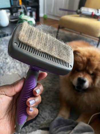 We hope you love our recommendations! While every product is independently chosen by our editors, BuzzFeed and our publishing partners may collect a share of sales or other compensation from the links on this page. You can read more about how our affiliate partnerships work in our Editorial Standards & Ethics Guide. The Furminator deshedding brush and Earth Rated pet wipes might just be my two favorite pet products on the planet. A few things you need to know about chow chows: 1) They are double-coated, like huskies, which means they have a thick undercoat to regulate their temperature. Undercoat = lots of fluff and expensive grooming. 2) They are notoriously stubborn, so I have spoiled my pup to the point of him having very bougie tastes (like, he won't eat kibble without a duck topper). 3) I love him more than anything in the world for teaching me so much about myself and the ups and downs of dog parenting, so hopefully you benefit from some of our favorite picks! I use these wipes every single day. No exaggeration. Look at that floofy butt. Yes, he manages to get poop on it during every potty trip that results in a #2. I was using warm, wet paper towels until I saw a 400-pack of these on sale during Fall Prime Day. THEY ARE SO MUCH BETTER!!!! They are so soft, and now, my puppy barely reacts when I have to wipe his butt, and it is so satisfying seeing all the dirt and poo come off of my buddy's backside and onto the wipe, so I don't have to worry about my rugs or couches being stained later on. 😮💨 PLUS, I use them for eye goop, dirty paws, his beard area, and even his wee-wee if it looks like it needs some extra TLC between baths and grooming appointments. Seriously, get these. Buy the 400 pack. I have a pack in the car, his go-bag, at home, and keep a few in a sandwich bag in my fanny pack. Also, they are thick and a pretty good size, so for booty cleaning, I only need to use 1–3 wipes, depending on how messy. Get a 100-pack from Amazon for $9.98 (available in three scents). It also boasts a teeth-protecting edge guard for when you're not using the brush, and a convenient ejector button to retract the teeth and remove the fur. When I first got my puppy — before he had really grown into the mane and lion-look fluffiness — my best friend told me about The Furminator, a deshedding brush they'd used on their Aussies. Until then, I had only been equipped with the basics: a retractable brush and this scary-looking detangler that my dog definitely did not like (and I never really figured out how to use). Because they are double-coated, most of their fur has to be brushed out or manually removed unless it gets caught on something. The Furminator deshedding brush tackles those patches of undercoat expertly, literally removing swaths of undercoat fur in sheets. Chow chows aren't heavy shedders throughout the year, as it doesn't come out as easily as other dogs (usually in tufts of fur or getting caught on things). But during spring and fall, they blow their coats to prepare for the seasonal transition, which leads to A LOT of fur flying around the house. Because of this, I don't really notice a difference in him shedding less, but I do know that using the Furminator brush weekly seems to make him more comfortable and help with maintaining and/or removing the undercoat growth during those heavy shedding seasons! Get it from Amazon for $31.87+ (available in three sizes). This thing is a miracle worker! Every now and then, my dog wakes me up in the morning by vomiting on the carpet (which he thinks is doing me a favor). I nabbed the Little Green on a discount during Fall Prime Day, and a week later, my puppy threw up SEVEN times after a late dinner and very exciting round of the zoomies throughout the night. It does take a little elbow grease when it comes to scrubbing, but overall, the sprayer and solution soak into the stain. You work at it for a bit, and then simply vacuum up the remnants of the stain and the solution. Depending on the severity of the stain, you might need to make a couple of passes over it before it's fully removed, but this is still way better than using a scrub brush and towel to sop up the mess. Long story short: this portable carpet cleaner removed every single stain, including older stains that I thought had set into the carpet and were a lost cause, and I learned I can use it on my couch from a previous vinegar and baking soda stain! If you have pets and/or children, I seriously recommend adding this portable cleaner to your arsenal. I wish it came with a storage bag because I literally take it to other people's houses to tackle their stains. So satisfying! This is a subscription-based service, but it's absolutely worth it. When I moved, my pup had a difficult time adjusting to me being gone for long stretches of the day and ended up stress-licking his paws, which led to a hot spot and a vet visit. So, the next day, I ordered this camera and a miniature one on Amazon to keep an eye on him. It comes with instructions to get your pet used to the treat-throwing and the sound of the camera rotating around the room when it follows. My pup acclimated pretty quickly to the point where he doesn't notice it most of the time, but is fully aware that it can dispense treats at random times (because you do it via the app). If you decide to use the treat toss, just know it only works with certain treat sizes. I use these duck nuggets and freeze-dried beef liver pieces because they can be tossed without a problem! BTW — it does have two-way audio, and it works pretty well with only a minor lag, but my pup absolutely hates it when I talk to him from the camera and will literally go out of view. I also have the mini camera near the door! Before I had a dog, I had a balcony, and I loved it. I've recently moved and have a balcony again, and not only do I love it, but so does my dog, because if a chow wants to do anything, it's people-watching. So when I knew I was going to h