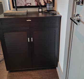 We hope you love our recommendations! While every product is independently chosen by our editors, BuzzFeed and our publishing partners may collect a share of sales or other compensation from the links on this page. You can read more about how our affiliate partnerships work in our Editorial Standards & Ethics Guide. You'll be shocked by how easy it is to disguise such monstrosities. Reviewers also use this as a media console to store games and electronics, too. Like I said...genius! Promising reviews: "I love this piece. Before, everyone in the family would come in and throw their shoes off and the area was a mess. Now everyone takes time to put their shoes in this and the area looks so nice. I’ve had many compliments on it." —Vicki Davis "I’ve had open shoe racks and the shoes were always falling out. Now all my shoes are contained and organized and hidden in a nice cabinet that’s low profile." —Kirsten Soquel Covogoods is a Utah-based, woman-founded small business that specializes in storage solutions crafted from up-cycled books. Promising review: "We absolutely love our CovoBox. It fits perfectly into our cabinet, and the cable modem/router, AppleTV, and external hard drive, and their various cables are now cleverly disguised as Harry Potter books 1–7. Great customer service, quick delivery, and a fabulous product. Two thumbs way, way up!" —John Grace Get it from Covogoods on Etsy for $29.40+ (originally $42; available in various customizations and sizes) OR from Amazon Handmade for $39+ (you'll choose customizations before adding to your cart). Promising review: "This is a very handy item. It fits perfectly in my laundry area. Easy to assemble and to use. A must if you like to be organized and you don't have a lot of cabinets to do so. I am very happy with this purchase!" —Amazon Customer Get it from Amazon for $22.99+ (available in five colors). Promising reviews: "This is the laundry basket we have on top of our dryer for whites. It is attractive, holds up nicely and if we have people over, they do not need to see our laundry displayed. Love it!" —Karen R. "Wow very thick and sturdy! I’m quite surprised. Love it for my nursery laundry basket for all the toys. The color is just as photo shows, complementary for all decor types. Good value for the money!" —Ichi Ban Get it from Amazon for $22.99+ (available in four sizes and five colors). It comes with a removable liner for the hamper that can be easily lifted out and wiped clean with a damp cloth. Promising review: "Straightforward assembly and a beautiful product, I was really happy. This looks perfect in a small bathroom and hides the unsightly laundry pile nicely. I keep makeup on top and extra toilet paper in middle, with plenty of space. The bamboo is nice and water resistant too, so deals well with humidity." —AJohns Get it from Amazon for $69.99 (available in two sizes/styles). One pint covers 100 square feet of brick surface. Note: The paint must be diluted at at least a 1:2 ratio with water to achieve full coverage! Promising review: "This is amazing!!!!! It looks like a different fireplace. I have been looking at a horrible grout repair that the previous owners did for 20 years. I did this in about two hours!!!!!! This product is fast, it's easy to use, easy to clean up, and inexpensive." —Denise Get a pint from Amazon for $21.37 (available in larger sizes). And grab a sleek cable sleeve (aka a wire cover) while you're at it! Promising review: "My cords look so much neater now. I also used a cord protector to bind up my cords. My surge protector fit nicely in the box. Very happy with my purchase." —Amazon Customer Get a two-pack from Amazon for $29.99 (available in four colors). No tools required! It comes with a two-way clamping design that works on both horizontal and vertical surfaces. It's compatible with desks that are up to 3.1 inches thick. BedShelfie is a POC-owned small business that focuses on space-saving solutions for the home. Promising review: "First impression of the CarryUp, the build of it is solid and felt heavy. The weight of it made me confident it will hold up well and last me a long time. Overall setup was a breeze. No tools needed at all. One sentence that sums up this product for me ... Simple and effective!!!!! If you have messy cords underneath your desk then don't think, just buy this product." —Eddie Sadiwa Get it from Amazon for $24.99 (available in dark grey or cream). OK, so painting your concrete patio may not sound like the easiest upgrade but if you're no stranger to painting and want a big impact, give it a try! Promising review: "Works great. Used it in the basement for a quick, simple, inexpensive upgrade to brighten up the floor a bit and give the cement a clean look. Did a fairly good job filling in some of the hairline cracks as well." —T Get a gallon from Amazon for $35 (available in silver gray or slate gray). There's a removable divider inside depending on how large your litter box is. You could keep the divider in and use the other side to store bags of cat litter, the scooper, etc.! Promising reviews: "I absolutely, LOVE this litter box cabinet. I used to keep it in my closet until noticing my clothes would have a chalky film on them. This is perfect!! Not only does it hide the box itself, but it helps contain any smells that are beginning to emanate from the box. I clean it out every other day and have never noticed any odors. I also took out the divider, because my box was a few inches too long. All changing supplies are kept inside, so it works out great! I HIGHLY recommend, this litter box cabinet!!" —Angie "This is the perfect way to conceal a litter box as well as the odors and dust that come with them. I have noticed a significant difference in the air quality in my home, it is as if I don't even have a litter box." —Annie Get it from Wayfair for $69.99+ (originally $82.99+; available in five colors). While restoring a finish isn't quit
