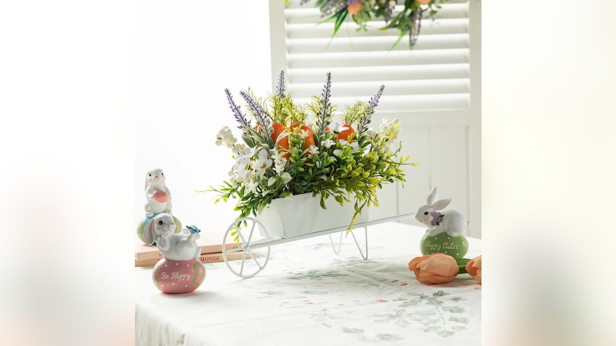Transform your table for Easter with a few thoughtful touches. (iStock) A few well-chosen pieces can instantly elevate your Easter table. From floral linens and serving platters to soft pastel accents and spring-ready serveware, these budget-friendly picks bring seasonal charm without complicating your hosting plans. Original price: $57.19 Make the main dish feel special. (Wayfair) This oval serving platter features a bunny and a floral design to add that spring flair to your table. Use it to serve the main course or wrap it up as a thoughtful hostess gift. Original price: $59.09 Fresh greenery for your place settings. (Amazon) These cabbage plates bring a pop of green to each place setting. The sculpted leaf design feels festive without going overboard, and they’re microwave- and dishwasher-safe for everyday use. Layered styling made easy. (Amazon) This buffalo plaid table runner in soft pastels adds a subtle spring note to your table scape. Use it on its own or layer it over a tablecloth for added texture. READ MORE: 11 practical home upgrades you'll actually use – all 40% off or more on Amazon Original price: $74.99 Instant spring table refresh. (Amazon) A seasonal tablecloth quickly pulls everything together and this one pops with or without a table runner. This cotton option features watercolor bunnies, florals and butterflies for a soft, festive look. It’s also machine-washable for easy reuse next season. Add Easter cheer to any seat with these pillow covers. (Amazon) Add a touch of Easter decor to your living room with these seasonal pillow covers. Each pillow in the four-piece set features a different festive design, including Easter eggs, rabbits and a cross. Original price: $113 Serve sweets and style your centerpiece at once. (Wayfair) A tiered serving stand adds height and dimension to any table. This Lenox design features hand-painted butterflies and flowers for a festive look and practical design. Use it for tea cakes or display decorated eggs for a simple centerpiece. Soft pastel charm for your table. (Amazon) Swapping out disposable napkins for cloth ones is an easy way to dress up an Easter table. This cotton set features watercolor bunnies, chicks and spring blooms for a subtle pastel touch. Consider this pink pastel option if you prefer a single color. Dress up your napkins for Easter. (Anthropologie) Add a seasonal twist to napkins you already own with these white porcelain bunny rings. They elevate the table for Easter without requiring a full redesign. A charming accent with signature checkered detail. (Amazon) This MacKenzie-Childs bunny figurine adds instant personality to a tablescape or sideboard. The pastel checkered pattern feels playful yet polished, and the upright silhouette adds visual height. A classic spring style that returns year after year. (Amazon) These toile plates feature a soft green bunny illustration and scalloped edges for a timeless look. Want a full refresh? The coordinating 16-piece set includes bowls, salad plates and mugs. A small detail that makes a big difference. (Anthropologie) These tulip-shaped shakers sit in a porcelain basket and add a playful spring touch to your table. They look heirloom-quality and have that charming appeal that makes you reach for them year after year. READ MORE: 12 home upgrades under $25 on Amazon that feel far more expensive Original price: $72.99 A subtle seasonal accent you can reuse. (Wayfair) Use this hand-painted pitcher to serve your favorite springtime beverages. It has a whimsical bunny and soft blue floral design that you'll reach for every spring. An added plus: it doubles as a vase for fresh spring blooms. Fresh spring style in seconds. (Wayfair) This six-foot Birch Lane garland mixes greenery, carrots and eggs for an easy seasonal update. Drape it across a table or mantel for instant color. For more deals, visit www.foxnews.com/deals A ready-made spring centerpiece. (Wayfair) This handmade metal wagon comes filled with lavender, baby’s breath and bright carrots for a pop of spring color. It works well beyond Easter as everyday seasonal decor. If you’re an Amazon Prime member, you can get these items sent to your door ASAP. You can join or start a 30-day free trial to start your shopping today. Nora Colomer is a writer reporting on beauty, style, home, kitchen, tech and fitness for Fox News. Get all the stories you need-to-know from the most powerful name in news delivered first thing every morning to your inbox Subscribed You've successfully subscribed to this newsletter!