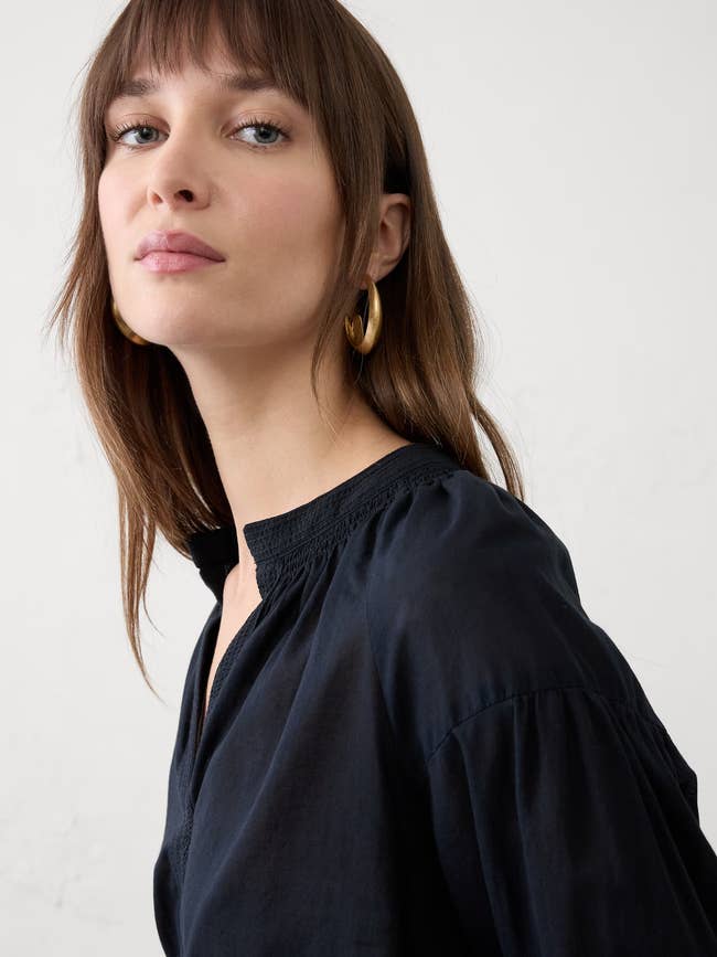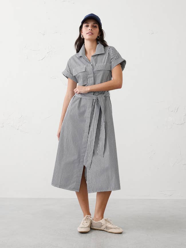 We hope you love our recommendations! While every product is independently chosen by our editors, BuzzFeed and our publishing partners may collect a share of sales or other compensation from the links on this page. You can read more about how our affiliate partnerships work in our Editorial Standards & Ethics Guide. Stock up on work classics, timeless basics, and the dress you're going to wear to all 1,000 summer weddings you have this year — for 40% off. Unless otherwise specified, all sizes in this post are listed in women's. No code is needed to score these discounts! Unless otherwise specified, all sizes in this post are listed in women's. Promising review: "I wasn't sure if this coat would be boxy, but I decided to go ahead and order it, since BRF has a great return policy. I was pleasantly surprised at the quality and fit of the coat. I wanted a coat for my upcoming spring trip to Italy, and I plan to layer it with lighter sweaters and shirts, and the XS is a bit roomier than I wanted. I decided to order an XXS to see if the fit is better with lighter layers. In any case, I think this coat is a fabulous and stylish addition to my spring wardrobe. I live in Dallas, so I anticipate wearing this quite a bit. It's knee-length, so it will be my go-to jacket with jeans and trousers. Also, as other reviewers noticed, it's a light beige and not gray at all, so don't let the color deter you from ordering this." —Donna T. Price: $120 (originally $200; available in sizes XXS–XXL, petite sizes XXS–L, and two colors/fabrics) + 20% off at checkout Promising review: "I was pleasantly surprised by the quality and how beautiful this bag is in person. It's much more beautiful than it looks in the pics. It's a large-size bag and holds a lot of stuff without distorting the shape of the bag." —Renee B Price: $90 (originally $150; available in three colors) + 20% off at checkout Promising review: "I found my perfect pair of wide-leg pants with cuffs. These look tailored and on-trend. I love them." —Anne M. Price: $60 (originally $100; available in regular sizes 24–35 with two inseams, petite sizes 24–32, and seven colors/washes) + 20% off at checkout Promising review: "The animal print is very cool, and the shoes are very comfy! True to size." —Hania B. Price: $60 (originally $100; available in sizes 6–10 and two colors) + 20% off at checkout Promising review: "I absolutely love this shirt. It lies so nicely, fits great, lies flat under other tops, silky smooth." —Jenny L. Price: $48+ (originally $80; available in regular sizes XXS–XXL, petite sizes XXS–XL, and eight colors/patterns) + 20% off at checkout Promising review: "I gifted myself these earrings for my birthday, and I couldn't be happier. They have a timeless, classic style with a modern vintage gold finish that adds just the right touch of elegance. The hoops are a little on the heavier side, but they look absolutely lovely and elevate any outfit from casual to dressy. Definitely a piece that makes you feel special every time you wear it :)" —AD Price: $24.97 (originally $45) + 50% off at checkout Promising review: "Very impressed by the quality and fit of this vest. Material is like a thick ponte fabric that doesn't wrinkle and has great stretch. Vest is lined, if you're in between sizes I recommend sizing up. Length is great, and overall extremely good quality. I'm thrilled!" —Brittney G Price: $60+ (originally $120; available in regular sizes 0–18, petite sizes 00–14, two fabrics and five colors) + 20% off at checkout Price: $99.97 (originally $200; available in regular sizes XXS–XXL and petite sizes XXS–S) + 50% off at checkout Promising reviews: "I did not expect to love these boots. I don't know why because I truly love everything I get from Banana Republic Factory. I thought for sure that when I received them, I would be returning them. But I just received them and slipped them on, and they are perfect. They fit great (I went with my normal size despite other reviewers' advice and they are perfect… possibly because I'm wearing thick socks). I also didn't understand what was *slouch* about them; they are just not skin tight. But the heel is the perfect height, and they are just dressy enough for a dinner out in the city. Love them! I want to get more colors!" —Jayne M. "I have wide calves, bunions, Plantar Fasciitis, and low expectations. These boots fit so well, and I had no foot pain. They only slouched a little bit during the day, but nothing annoying. As other reviews have stated, they are large fitting. I ordered my true size and was fine wearing tights. There's also enough room to wear thin socks or even insoles. I'm thinking about buying them in black just because." —Marie B. Price: $50 (originally $150; available in sizes 6–10 and four colors) + 20% off at checkout Price: $78 (originally $130; available in sizes 6–10 and two colors) + 20% off at checkout Promising review: "This skirt fits beautifully and will definitely be a staple of my wardrobe! Super comfy and stylish with boots." —Zeta M. Price: $55 (originally $110; available in regular sizes 0–18, petite sizes 00–2, 6–16, and two washes) + 20% off at checkout Promising review: "Yes, I ordered half a size smaller like other reviewers said to, and they fit perfectly! I think they are both comfortable and cute! And you can't beat the value. Wish there were more colors!" —P Hunnings Price: $54 (originally $90; available in sizes 6–10) + 20% off at checkout Promising review: "I bought this for my college-age daughter, who is 6'1" and bought it in Tall. Fit was perfect, and the material was amazing! Highly pleased with this purchase!" —Anna J Price: $50 (originally $100; available in regular sizes XS–XL, tall sizes S–XL, petite sizes XXS–L petite, and in navy) + 20% off at checkout Promising reviews: "I bought this dress in the navy stripe, green, and black. Nice, lightweight cotton and a great price. These dress