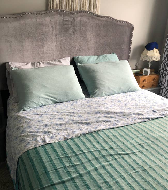 Promising review: "Super happy with these pillowcases — both sides are fairly cool, but the cooling side never warms up, which is wonderful in 110-degree California summers. They do not smell (something I worry about with nontraditional linen fabrics). They do tend to get a little wrinkly, but since they zip up, they quickly smooth out." —Tonia