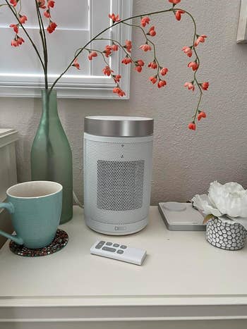 Promising review: "This little guy truly got me through this winter. For the size, it's very powerful. I'm a fan of the timer feature as I like to set it up when I'm getting ready for bed and the thought of running it all night is scary. I also love that if it tips over for any reason, it will automatically count down and shut off. Very reassuring. I can appreciate the thought that clearly went into its design as well. It looks more like a speaker than those traditional clunky space heaters so this is a solid WIN. 🏆" —Wanda Russell