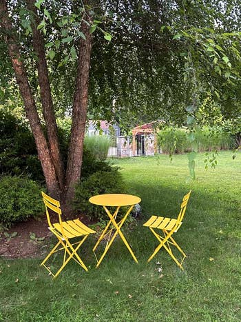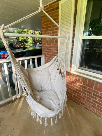 We hope you love our recommendations! While every product is independently chosen by our editors, BuzzFeed and our publishing partners may collect a share of sales or other compensation from the links on this page. You can read more about how our affiliate partnerships work in our Editorial Standards & Ethics Guide. A sleek three-piece rocking chair set so you can spend lazy days rocking it out on your porch. Soon, you'll be spending more time outdoors than in, so it's essential to have a nice place to sit back and relax. A gas firepit table so you can keep warm on chilly nights. It comes with a lid, so when the fire's not in use it can be used as a table. Some bamboo wind chimes to bring some zen vibes to your outdoor space. When it moves, the bamboo produces deep, soothing tones that'll blend nicely with nature's soundtrack. No batteries, no wires, just peaceful background music you didn't have to find via a playlist. The chairs are tired, the grass is confused, and everything feels like it's still waiting for permission to wake up. But with spring basically tapping us on the shoulder, this is your cue. The time to upgrade your lighting, claim better seating, and maybe secure a 100-inch movie screen for outdoor cinema nights is now, so when the first warm evening hits, your outdoor space will already be operating at 5-star status. Promising review: "I have two strings of this for my rooftop. They work so well and are so lovely. The dimming option is perfect, as these can be really bright." —Cinema4 Get it from Amazon for $32.99+ (available in 50 ft. or 100 ft. lengths). Promising review: "These are beautiful, and I love how easy it is to put in my garden. Solar lights work very well, and I like seeing how the lights sway when there's a gentle wind blowing. Nice garden accents." —Mike Lucero Get it from Amazon for $11.39+ (available in packs of two, four, six, eight, and 10). Promising review: "This set is beautiful, good quality — especially for the price and so sleek and bold looking! I ordered this twice because I was so thrilled with the first set I ordered!" —Amazon Customer Promising review: "I ordered waterproof speakers so I could sit outside, and I’m so glad I found these. They’re perfect for what I needed because they are similar to tiki torch lights that are already planted. They give off a nice ambiance when sitting out back, and the sound is loud but not too loud to disturb neighbors. Bluetooth connection is easy. So far, so good, and I’m satisfied with my purchase." —applefir Promising review: "Was actually a little bigger than I expected to be for the price. Beautiful and well worth the money. Sounds beautiful." —Ashleigh Yates Promising review: "Hands down best bang for your buck — absolutely worth it! Quality is like one of those $250 ones and this one is under $200. Go for it! Looks so much better than having a fridge outside on your patio for your cold beer/drinks." —Priscila Lapins "Ice retention was great all night long, making our beverages cold ’til the next day. And size and color were just as listed. Overall, it’s nice." —Rob Huizar Get it from Amazon for $161.99+ (available in three colors). SWOOC Games is a small biz specializing in game sets, many of which are outdoor-safe. Promising review: "Our family loves Yahtzee, but Yardzee was so much more fun! It is like a giant lifesize game. It was so much fun to play outside as a family. We had ages 7–65 playing and enjoying the game. As a homeschooler, I also love that it sneaks in math and writing." —The Waldock Way This swinging hammock chair comes with two cushions and installation hardware. Promising review: "Back to basics — simple, chic, and comfortable. Perfect addition for the backyard, porch, or anywhere you'd like to lounge. There were no installation directions, but they do provide a number of options to work with based on your needs." —afytasuki Get it from Amazon for $49.99+ (available in four colors and with or without tassels). Promising review: "Perfect size for our quaint balcony space in our condo building. The vibrant chartreuse color couples perfectly with our retro robin egg door. Lightweight, already assembled, and super easy to clean. The price makes this set a no-brainer. (It's cheaper than Target and CB2, but it is equal in quality.) Awesome summer buy." —Nouvelle Mere Get the set from Amazon for $94.99+ (available in six colors). Promising review: "Lovely colorful flower pots. Perfect size to hold a single flower, and they add such a nice pop of color to my yard. Very easy to hang up, no hardware required! I’m getting a lot of compliments on them. I bought several sets and planted bright flowers in them. I have them lining the inside of my yard and on the front of the house. They add a lot of cheer and homeyness for a simple and cheap project." —Maegan Get a 10-pack from Amazon for $18.99+ (available in multicolor, black, or white). Pick up a sturdy rust-resistant curtain rod while you're at it! Promising review: "These curtains are AMAZING! Beautiful and elegant. Hangs beautiful, very light blocking, keeps rain out of our Tiki bar, we can sit out there in the rain, and keeps the heat in on a cool fall evening when we have the fireplace on!" —Sara Bushendorf Get it from Amazon for $9.47+ (available in 16 sizes and 16 colors). Promising review: "Adds a nice touch to our patio, allows us to enjoy a hot cup of coffee on cool mornings or a nice glass of wine at night." —Daniel Garcia "Easy to use. The stones' colors are beautiful, and they give off nice heat. I'd definitely recommend it and wish we'd got it sooner" —E. M. Gould Get it from Amazon for $189.99+ (available in two sizes; be sure to clip the $20 off coupon). Promising review: "I couldn’t be happier with this set. It’s stylish, comfortable, and surprisingly sturdy. The cushions are thick and supportive, and the frame feels durable enough to last through different seasons. It fits 