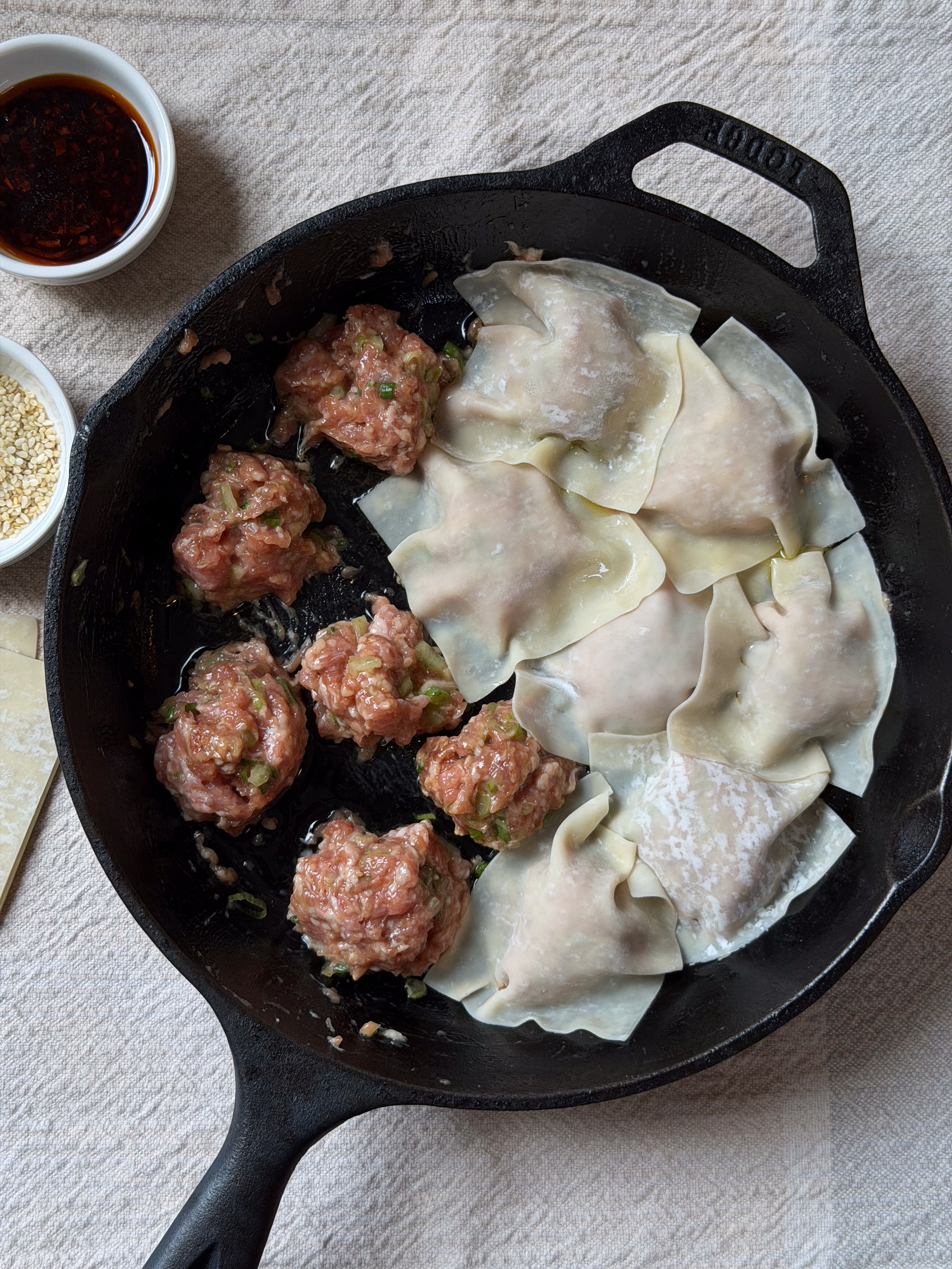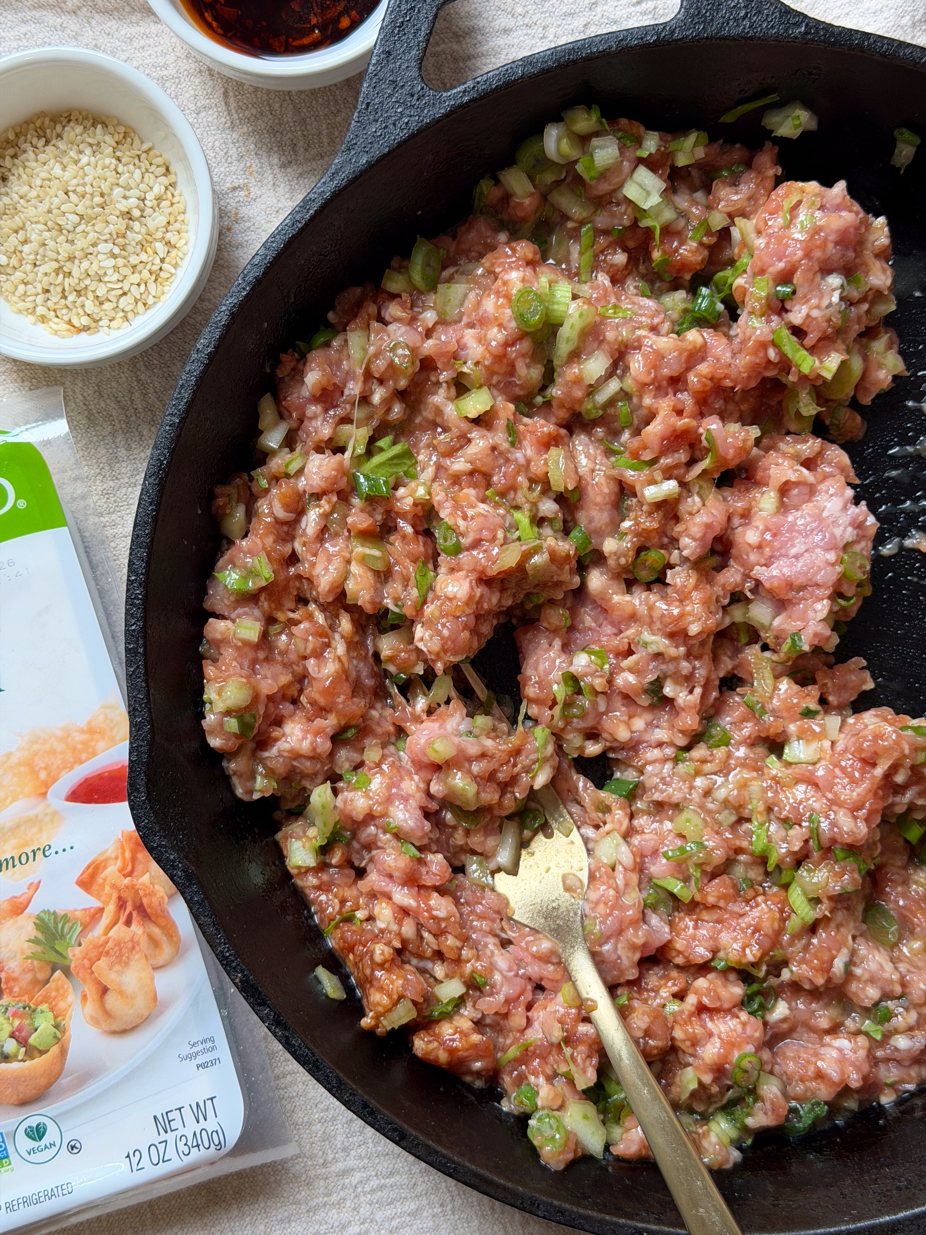 And yes, they are as easy and worth it as they look! 1 medium-sized lotus root, finely chopped (see note below) I’ll also note here that not all the filling fit into my eight-inch cast iron skillet, so I had to work in two batches. If you’d like to do it all in one pan, I suggest a large cast-iron skillet, about 12 inches.