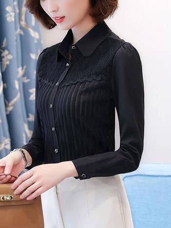 We hope you love our recommendations! While every product is independently chosen by our editors, BuzzFeed and our publishing partners may collect a share of sales or other compensation from the links on this page. You can read more about how our affiliate partnerships work in our Editorial Standards & Ethics Guide. Forget coordinating a full outfit, all you need is one of these stylish tops! Unless otherwise specified, all sizes in this post are listed in women's. Promising review: "To be honest, I didn't have very high hopes for a shirt this inexpensive. But at that price point, I also figured that I didn't have much to lose. I'm busty and have tattoos on my shoulders, so finding cute, comfortable clothing that's suitable for work and doesn't break the bank can be a challenge. This shirt looks exactly like an Elloquii one I've been eyeing for a while, but at a fraction of the price. I'll probably get the other colors as well!" —Arden Bee Price: $23.99+ (available in sizes 1X–4X and six colors) Promising review: "Feels so silky and comfortable. I hardly ever take it off. Except to shower. I wear it all day long and I sleep in it. I got some for my sister and for my daughter. I don't think I'll ever wear a bra again. A real game changer for me. I feel comfortable all day long. Be sure to size up if you have larger breasts." —Amazon Customer helen Price: $15.33+ (available in sizes XS–3XL and 37 colors) Promising review: "JUST GET IT! I had this blouse in my cart for a while and finally decided to purchase. I LOVE IT! It's gorgeous and I can't wait to wear it. I think it's so unique because it has a vintage look but also has a lot of versatility. It could be paired with high-waisted jeans, trousers, or skirts. I hope you love it too!!!" —ChristineMarie Price: $32.99 (available in sizes 2–20 and in four colors/styles) Promising reviews: "Love these sheer long-sleeve lace shirts. I've recently ordered three of these in different colors to wear under graphic tees and sweater vests. The quality is nice, and they run true to size. They are a great value for the price." —Donna K "I love this blouse. It goes well under my work uniform and is very sexy…" —Kelly Nurse Price: $7.99+ (available in sizes S–3XL and 22 colors/styles) Promising review: "Perfect blazer! Great quality for the price, fits true to size, and looks polished with jeans or work outfits. Very versatile and stylish — already getting compliments. I’ll be buying more colors!" —Jenn Price: $41.99+ (available in sizes XS–XXL and 23 colors) Promising review: "I have this sweater in several colors! The material is very soft and well-made. The sleeves are puffy but not overly big. It is lightweight enough to be able to tuck it in without looking bulky, but it is still warm. It is a very pretty sweater and looks and feels expensive." —Bloom and Blends Price: $16.99+ (available in sizes S–XXL and 23 colors) Promising review: "I love this top and will absolutely be buying other colors. It’s very soft and comfortable, but also super cute. Great enough top to make a girl who never writes reviews write one." —Delaney Price: $16.99+ (available in sizes XL–5X and 30 colors/prints) Promising review: "Such a cute work top!! Fits perfect and is so comfortable. Wore with jeans and work pants." —Jenna LeFevre Price: $19.99+ (available in sizes XS–4X and 23 colors) Promising review: "Love this sweater jacket! Just the right weight and goes with literally everything!! Great quality!! Love everything from this line!" —1a2b2b25y Price: $39.99 (available in sizes S–L and seven colors/patterns) Promising review: "Shirt fits as expected, beautiful color, and lace is well sewn. Love it." —Amazon Customer Price: $7.99+ (available in sizes S–XXL and 21 colors) Promising review: "This is a great top for a great price. It can be dressed up with a pair of slacks and a pair of boots, and possibly a blazer, or dressed down, tucked into jeans with pennies. I absolutely love it. It fits great, and at this price I’m gonna go back and get a couple more." —MustHaveBooks Price: $9.99 (available in sizes S–4X and 36 colors and patterns) Promising reviews: "I love these kimonos, I ordered two of them to try (the black and navy blue), and they fit and feel amazing. I just ordered two more in different colors. They're very thin, so they're great to wear in the heat if you want to cover up just a little bit. They not only go with a swimsuit but also with pretty much any outfit you wear. I have gotten so many compliments on mine and asked where I bought it! I have huge boobs, so I like to have a little cover-up over my regular clothes, and this is just what I was looking for! I highly recommend. They do run a little big, though. I wash mine by hand and hang dry because it is a very thin material, and I'm not sure how they would hold up going through the washing machine." —Cee Price: $9.99+ (available in sizes S–3XL and 30 styles) Promising review: "This silk blouse is absolutely stunning—soft, lightweight, and feels luxurious on the skin. The fit is great, and it works perfectly for both work and casual outings. Love the quality and the classy look. Will definitely buy more colors!" —Nayu Llanez Price: $31.34+ (available in sizes XS–XL and eight colors) Promising review: "I absolutely love this shirt! After my first purchase I ordered it in three different colors. All of them are beautiful. They come with a belt but you don’t have to wear the belt. It still looks cute without it. My weight fluctuates a lot, and I really like the fact that I can wear it when my weight is higher or lower. The shoulders are super cute. You can wear them up or down below the shoulder area. I always get compliments when I wear it. Go ahead and get this shirt. You won’t be disappointed. Its wrinkle resistant material and isn’t overly soft but absolutely not itchy. It has held up well through many machine washes so the quality i