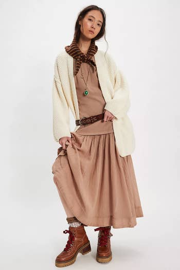 We hope you love our recommendations! While every product is independently chosen by our editors, BuzzFeed and our publishing partners may collect a share of sales or other compensation from the links on this page. You can read more about how our affiliate partnerships work in our Editorial Standards & Ethics Guide. Are you and your closet ready for it? I really hope so. 🤭 Unless otherwise specified, all sizes in this post are listed in women's. FYI, many reviewers mention they have sized up twice to get a more relaxed fitting without losing shape. Promising review: "I fell in love with the tank version, ordered my usual medium, and had to hope large was restocked. It did, but they still felt a bit tight. This time I went up to an XL, and it's perfect. Not tight, but not too loose either. It's rare in FP to go up to an XL. The lace is beautiful. The top is soft. I'd gotten the black, and wearing this open could be a 'jacket' over a tank or mesh top. LOVE!" —Coco2Too Price: $78 (available in sizes XS–XL and nine colors) Promising review: "These trousers are very nice. Just as pictured, though not black, black. Nice, heavy fabric, so perfect for fall. The wide leg is EVERYTHING." —Tonesse Price: $168 (available in sizes XS–XL and six colors) Promising review: "Ordered my usual size — fits perfect." —Mell 11 Price: $108 (available in sizes XS–XL and four colors) Promising review: "These little booties are incredibly comfortable and so unique! I’ve loved styling them throughout the fall and now into the winter months. The tan color is super versatile, and the style instantly elevates any outfit. Highly, highly recommend!" —KT4444 Price: $228 (available in sizes 6–11 and three colors) Promising review: "I’m absolutely OBSESSED with this top! Bought for a cruise, but was a tad skeptical because of the $$$ tag. Boy, let me tell you, I am SO glad I went for it! It’s such a gorgeous top, flowy, and can be worn different ways. I’m usually a medium–XL in other brand tops, depending on the brand, and I ordered a medium. I’m 5’7” and it fits perfectly oversize as shown on the model. Go for it — you won’t regret it! I got the plum color, and thinking about ordering the white now!" —HoopsMomma Price: $128 (available in sizes XS–XL and three colors) Promising review: "I am absolutely in love with these jeans. I just received them three days ago and I would wear them every day if I could. They definitely run small so I recommend sizing up. I’m usually a 27 waist and ordered a 28, and they fit perfectly. Overall, really cute. I’m really happy with my purchase." —anonymous Price: $128 (available in sizes 24–33, short and regular fits, and seven colors) Promising review: "I got a green one last year and will get a red one today. I absolutely love the skirt! Goes well with all kind of shoes… great quality, too." —anonymous Price: $148 (available in sizes XS–XL and five colors) Promising review: "This dress was so beautiful and love the color! Got lots of compliments" —fallonnnnnn Price: $118 (available in sizes XS–XL and 11 colors) Promising review: "Love this amazing jacket... and especially the color! Look forward to cooler weather when I can wear it! Jacket runs a tad bit large, so I ordered a small and it fits perfectly. I normally would order a large.... but with Free People clothes, I range in sizes. Excellent quality." —Tacosha Price: $168 (available in sizes XS–XL and three colors) Promising review: "I was hesitant to order these but they’re so amazing! I ordered the size 6, I have a 28-inch waist. They fit perfectly as I was hoping for! Hits at the waist in the back, then hits just below the belly button in front. I’ve been so sick of the super high rise shorts and I’m stoked about these, perfect!" —goldenevil Price: $128 (available in sizes 0–14 and three colors) Promising review: "I love this so much more than I even expected! It’s so soft and warm and adorable. I hope they restock and add more colors! I got two: the beige and the golden. Would buy more for sure! Would make a great gift too." —Karmaisa Promising review: "I was not sure based on reviews and I am not usually a fan of brown, but these I am keeping. The color is rich, dark brown and the fur lining is cozy." —GirlKyle1970 Price: $148 (available in sizes 6–11 and four colors) Promising review: "So cute!! Flowy and so fun! I have it in mustard and black." —anonymous Price: $148 (available in sizes XS–XL and two colors) Promising review: "Love this color combination of brown, white and blue. The jeans are comfortable and true to size. The pattern is cool. Buy them!" —anonymous Price: $128+ (available in sizes 24–33, short fit in some colors, and eight prints) Promising review: "I am obsessed with this skirt it’s so stunning, short girl friendly and super comfortable. I am 5’2" and got a size extra small (XS is my usual Free People size). It fits perfectly; my waist is 25 inches. Feels well made but definitely would wash in a delicate bag because of all the lace!" —anonymous Price: $98 (available in sizes XS–XL and nine colors) Promising review: "Runs true to size, roomy but not too oversize like some things. Beautiful color and detail!" —JuanitaP Price: $148 (available in sizes XS–XL and two colors) Promising review: "Perfect bodysuit for any occupation. I’m usually a 4–6 or small, but I got this in a medium because I have a long torso and wanted it to feel more daytime appropriate. I recently wore it at a conference and got a ton of compliments and it was so so comfortable, zero itch even with the mesh fabric!" —anonymous Price: $58 (available in sizes XS–L and seven colors) Promising review: "This shirt is super cute AND somehow enhances your booty?! The lil' flare gives your silhouette a nice pop. I typically wear small in FP (medium in most other brands), but went with medium because of the reviews, and it fits great. Good 