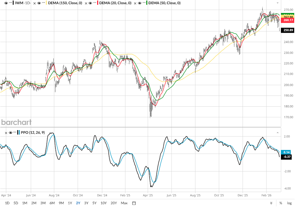 I don’t sugarcoat things. So let’s be clear: while risk is just risk until price action follows through to the downside, it will take quite a change of circumstances to stop small-cap stocks from plummeting from here. This is about as vulnerable a chart as I’ve seen in a while. It has all the makings of a move down toward the August lows around $210. And if it doesn’t burn all its bear fuel by then, last April’s $170 bottom is in play. That’s a breezy one-third off Friday’s close. ServiceNow Stock May Be Setting Up a Hidden Options Opportunity Defense Stocks Like RTX Corp Look Attractive to Value Investors and OTM Option Plays Unusual Options Activity Alert: The Smart Money Is Trading These 2 Nasdaq-100 Stocks Get exclusive insights with the FREE Barchart Brief newsletter. Subscribe now for quick, incisive midday market analysis you won't find anywhere else. So to me, the surge in unusual options activity for the iShares Russell 2000 ETF (IWM) is less of a surprise and more of a confirmation for those who have long viewed small-caps as structural laggards. As of Friday’s close, Barchart.com’s unusual options activity page is highlighting a massive spike in put volume that suggests the “smart money” is no longer treating IWM as a dormant value play, but is instead preparing for a significant technical breakdown. And I say, it’s about time! You see, the core problem with IWM is that it has become a no-alpha asset class that consistently fails to justify its higher volatility. When the market is at its best, IWM often only manages to rival the returns of the Invesco S&P 500 Equal Weight ETF (RSP), which offers a similar diversification benefit without the exposure to thousands of companies that lack the potency of the micro-cap space. For investors seeking true small-cap growth, funds targeting even smaller-cap stocks can often offer a more pure play, leaving IWM trapped in a middle ground where it captures all the downside of a weak market with very little of the upside of a high-conviction rally. I recently added the iShares Micro-Cap ETF (IWC) to my core portfolio of 10 ETFs that I rotate among. From a fundamental perspective, the plight of IWM is compounded by its sector mix, which tilts toward healthcare and industrials, sectors that have faced a structural drag compared to the tech-heavy giants of the S&P 500 Index. In an environment where persistent inflation remains a concern, these smaller firms often face higher borrowing costs and deeper drawdowns during market shifts. The rapidly deteriorating technical picture is the final piece of the bearish puzzle. IWM has recently experienced significant downward pressure, falling more than 2% in a single session to close at 250.89 last Friday, March 6. The increased put volume is a clear signal that the market is finally seeing what I have believed for a while: When the tide goes out, IWM is the first to leave investors stranded. Specifically, the following unusual IWM put options, highlighted in yellow on either side of those 2 SPY contracts, are currently in the spotlight for their popularity: Strike 238.00 (Exp 03/20/26): Showing an extreme Volume to Open Interest (Vol/OI) ratio of 38, with volume exceeding 96,000 against an open interest of just 2,526. Strike 239.00 (Exp 03/20/26): Recording a Vol/OI ratio of 22, with massive volume of 112,017 compared to an open interest of 5,177. Strike 245.00 (Exp 03/13/26): Carrying a Vol/OI ratio of 12.4, as volume reached 67,437 against 5,451 open interest. Strike 250.00 (Exp 03/13/26): Seeing a Vol/OI ratio of 4.4, with 75,409 in volume against 17,207 open interest. With momentum indicators turning negative and institutional hedges piling up, these puts rightfully command attention as primary tools for those betting on continued small-cap underperformance. Now, those options highlighted above are very short term. But this article is about “unusual” activity, not the normal activity I’d expect to see if IWM starts to fade further. Namely, that all put contracts will find an aggressive bid, as the hopes of “this time is different” falter. That’s just a really bad chart above. Moving averages tipped over, the percentage price oscillator (PPO) crossing down through zero, and the shape of that PPO line screams “getting worse” due to the increased downside angle late last week. With volatility around 30 at the close of last week, this might be a case where I spend the first part of this week trying to “take big shots with small amounts of money,” one of my trading mantras. Those 3/20/26 $238 puts would fit the bill. They are not cheap, for sure. But I’ve found this year that once the horse leaves the proverbial barn, even above-average volatility can reward put buyers for a little while. Rob Isbitts created the ROAR Score, based on his 40+ years of technical analysis experience. ROAR helps DIY investors manage risk and create their own portfolios. For Rob's written research, check out ETFYourself.com. On the date of publication, Rob Isbitts did not have (either directly or indirectly) positions in any of the securities mentioned in this article. All information and data in this article is solely for informational purposes. This article was originally published on Barchart.com