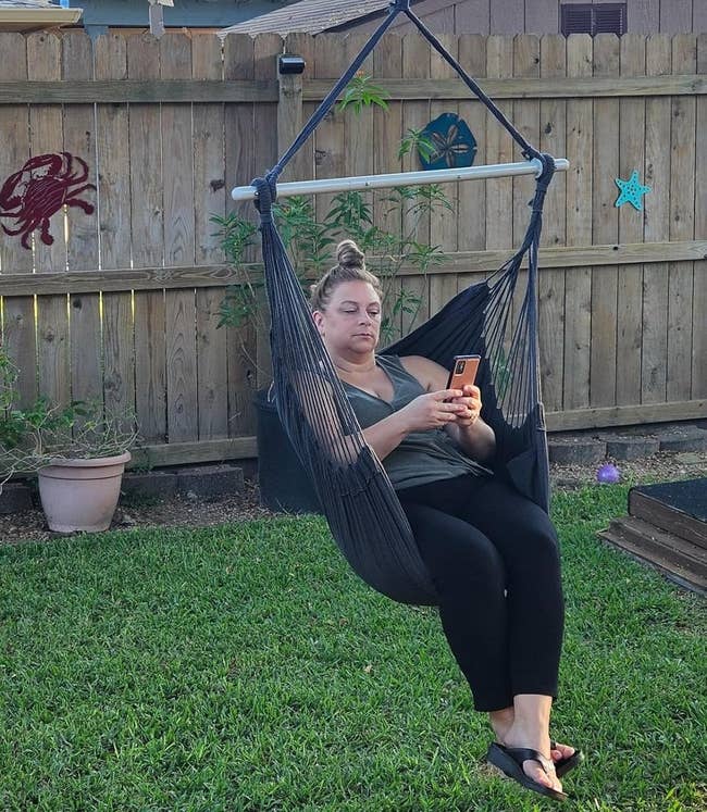 We hope you love our recommendations! While every product is independently chosen by our editors, BuzzFeed and our publishing partners may collect a share of sales or other compensation from the links on this page. You can read more about how our affiliate partnerships work in our Editorial Standards & Ethics Guide. Ahhhh, I wasn't sad; I just needed an outdoor hammock chair and to throw a pizza on the grill. One 5.6-pound bag provides about 615 sq. ft. of new lawn coverage, or up to 1,845 sq. ft. if you're overseeding. Promising reviews: "Before and after [above] of using the Rapid Grass + extra fertilizer for lawn bald spots from Sunday. This before and after is only 10 days of growth. I also applied a thin layer of top soil to let the grass root more." —Chandler Varonfakis "Have a dog who destroys the spot she likes to go. We rotate and use this and the grass comes back great and full." —Lindsey Get it from Amazon for $28.99+ (available in two sizes). Promising review: "I have a brick patio. When I bought this house it was covered, and I mean covered with moss. A good power wash each spring was never enough to stop the moss from returning, and month after month during the summers was a struggle, man vs plant. I did that for two years, cursing and complaining the whole time. This April I did my spring power wash as usual and immediately treated this patio. It is now going into August and I have not had even a wisp of moss this year — I mean nothing! I would recommend this product without any reservations. When you put it on you may think to yourself that it doesn't look like you really did much. It dries quick and looks the same as it did before, but wow does it do exactly what it says it will do." —PM in NH Promising review: "Claiming back my backyard!!! I'm ypically horrible at leaving reviews, but this one deserved it!! I couldn't enjoy the beautiful Arizona evenings due to the amount of mosquitoes and bugs that would attack me. This thing is a life saver!! I can enjoy my backyard again. Not ONE bite from those suckers. The sound of them crackling is music to my ears!!!" —Graselda Khouri Promising review: "I applied this product on an uncovered deck, which takes a beating from the sun and rain in the summertime and snow sits on the deck in the wintertime. I've tried several other wood sealers but nothing we have used holds up as well as this product. When it rains you can watch the water bead up and run off so you know that this product is working. I apply this product every summer to my deck to keep it in top shape. I also apply this sealer to the wooden floor of our covered porch and the boards shine like brand-new. Probably would not have to apply every year to the covered floor area but I do." —Bubba Get a quart from Amazon for $21.99+ (available in four shades and two styles). Grampa's Weeder is a family-owned small business that's home to a standing weeder design that's been around since 1913. Made with a bamboo handle and powder-coated steel, it uses a simple lever system to made weeding easy. Promising review: "Oh my god, I friggin' love this tool. I bought this on a whim given we bought our first house and know nothing about caring for a yard. Boy has it come in handy. Our new house had a ton of weeds in the front yard and this tool helped me get most of them out in no time. In fact, the process of yanking out the weeds was strangely satisfying! I don't think anyone can say that weeding is fun but this tool made it as close to fun as you can get, especially when you see a long root along with the weed you pulled." —JG Promising review: "With three dogs, two small and one large, scooping the yard is a never-ending job. But with the Arm & Hammer swivel bin and rake, there is no more bending to pick up the doggy droppings. I am able to easily use the rake to push the droppings into the bag covered bin. When I am done cleaning up the yard, I just simply remove the plastic bag from the scoop, tie it off, and dispose. I do spray the rake off with the hose sprayer and then clip the rake onto the scooper for easy storage. I really like this handy scooper. It makes a very icky job much easier to handle." —Kelly Eldred Get it from Amazon for $19.95 (also available in an XL version). It comes with all the hanging hardware you need! Promising review: "This is my favorite thing to sit in. The colorful woven fabric stays dry and clean while sitting on my covered front porch that is open to the elements. My seat doesn't sit in direct light; however, the color is still as vibrant as the day I hung it up. The seat is very sturdy as the cord that supports your weight is not anchored at one single point but along the whole edge. This seat is perfect for cuddling up with a blanket during chilly days as the seat sort of wraps around you and blocks some of that cold air. It's like your own personal cocoon." —Joli L Get it from Amazon for $51.19+ (available in five colors and two sizes). Promising review: "Got an outdoor can, the kind the mechanical arm on the garbage truck picks up and tips over, with the lid opening by gravity. Placed this on the inside of the lid, near the hinge to lessen the chances of it being scraped off during emptying and no flies/maggots! No apparent odor, just seems to put a big hurt on the fly party that used to be my trash can (litter box contents, remnants of meat, etc)." —Michael E. Bradley These gloves are designed to have a snug fit (which keeps your fingers flexible and also keeps dirt from entering), so if you prefer a roomier fit, size up from your usual glove size. Promising review: "Snug fit, very dextrous. I feel very protected from wet soil and yard debris (probably not thorns — haven't pushed it). I really love these gloves for gardening and even for light construction, like sanding wood. Grips really good and helps me get my hands dirty when I don't really feel like it. No need for a nail brush after gardening with these gloves." —