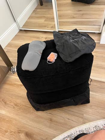 We hope you love our recommendations! While every product is independently chosen by our editors, BuzzFeed and our publishing partners may collect a share of sales or other compensation from the links on this page. You can read more about how our affiliate partnerships work in our Editorial Standards & Ethics Guide. This inflatable foot rest, phone mount, and drink caddy are bringing business-class vibes to your economy seat. This contraption provides 360-degree support thanks to a wraparound design and clips that connect it to your seat's headrest. Promising review: "Just took a 15-hour flight with this travel pillow, and this was the best travel pillow by far. I've used inflatable and memory foam neck pillows before; the major problem is that they don't secure your head and torso, so either your muscles have to hold up your body, or your head and torso will end up swinging around, and both are disruptive to sleep. With this travel pillow, my muscles can relax, and the padded eye mask will hold up my head and torso. One minor downside is that the pillow needs to be mounted on your seat's headrest; if someone bumps your seat, it can be disruptive, but this rarely happens. Its size and weight are also much less than memory foam neck pillows, and I don't have to bring an extra eye mask, so it is very travel-friendly." —Sky Get it from Amazon for $18.99+ (available in nine colors). Check out a TikTok of the nausea relief inhaler in action. PS: Allclair is a small biz! Promising review: "Took this on my first cruise. Anytime that I started to feel woozy, I’d reach for it. I’m sure the required act of deep breathing helped a lot — and breathing in the fragrance of the essential oil is very calming and effective. Worked for me! Wonderful!" —Willy&Lilly Get a pack of two from Amazon for $12.99 (also available in a pack of four). Promising review: "I ordered these earplugs for a long plane trip to another country. The earplugs did the job. They were extremely useful in drowning out most of the noise. I wanted to hear a little for announcements. These did the job. They gave me enough silence to get some sleep but I could hear enough sound to take them out during announcements. If you are looking for earplugs that allow you enough quiet to sleep, these are the earplugs to purchase. They are worth the purchase." —Khitkhat Get it from Amazon for $24.95 (available in four colors). Promising reviews: "Took my toddler on an international 17+ hour trip and I must say this was a great addition for him and me. He had a mini 1st class flight and occasionally I also was able to leverage it to put my feet up." —Nicole Ashley "Must have for long flights. My 1.5-year-old slept well on this inflatable airplane bed on an international flight. It fit nicely on the economy seat and was sturdy yet comfortable. My toddler slept for hours on it so I could get some rest too. I also like that it’s easy to set up and when packed up it is very compact so won’t take up much space in my carry on luggage." —Amy Get it from Amazon for $59.99 (available in two colors and two styles). Read more about compression socks and long flights at Cleveland Clinic. Promising review: "Nice socks! I purchased these for an overseas trip. I like the feel of them. The fabric is nice and soft, not too thick or thin. The socks are a good length for me and I like the color. The socks come with instructions of how to put on / take off. Also, directions on how to 'acclimate' to them by wearing them for shorter periods of time. They are very comfortable/supportive, stay in place while walking around and hug the right places (calves and foot arch). They also came with a little travel pouch, which is helpful for my upcoming travels. I definitely recommend these compression socks." —L. Alexander Get a set from Amazon for $19.99 (available in eight color combos and sizes S–XXL). Promising review: "I love this thing! I always hated putting things in the seat pocket on planes. It was easy for things to get lost in there or sometimes the pockets were pretty tight. This thing was amazing. I was able to get everything out of my bag that I might need during the flight and had easy access to it all. It was so much better than having to pull my bag out constantly to get stuff I needed. It also folds up nicely so it doesn’t take up much space in your bag." —Corey AND it folds down flat when not in use for easy packing. Just note you'll need to be sitting in the window seat and have full access to the window to use this. Promising reviews: "A friend recommended this to me as a vital travel companion, now that I've returned to frequent flying. I initially thought of it as a novelty, but now that I've used it, it's a necessity. It keeps the workspace clear for my laptop, but it also organizes all the little pieces that can become so annoying to keep up with — glasses, earphones, etc. It got my seat mate's immediate attention, as well as a few other folks nearby. I suspect they'll have one soon. Watch for one soon in a window near you!" —Timothy G. Wolfe "This is a very useful product and I take it with me on all my flights. Almost every time, the person next to me asks about it. It's especially useful on long-haul flights and international flights when you want that space the tray table takes up. It's light and thin, so takes up little room in my carry-on. Great accessory overall!" —Trung L. Perilogics is a small business creating hyper-functional tool holsters and bags for carrying your stuff on the go. Promising review: "I bought this nifty gadget about six months ago for a multi-leg, ultra-long-haul trip, and it more than held up the entire duration. I was able to finagle it to fit the tray tables on different planes, and like others, I find the height just nice when clamped onto a stowed tray table. It also works on my roller carry-on handle during layovers. However, I find myself using it a lot outside of travel too! Work-wi