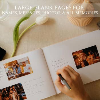 We hope you love our recommendations! While every product is independently chosen by our editors, BuzzFeed and our publishing partners may collect a share of sales or other compensation from the links on this page. You can read more about how our affiliate partnerships work in our Editorial Standards & Ethics Guide. You deserve a guest book that is as memorable as your special day. Let's be so for real — most wedding guest books get signed once, flipped through maaaybe twice, and then pretty much live out the rest of their days in a box next to your cute dress or on a shelf collecting dust. But what if I told you that there was a world of beautiful and unique guest book options that you'd love so much, you'd actually leave them out as a coffee table book or even play with them on game nights? If you love the idea of having sweet messages to look back on from your special day, and also want something that you'd be proud to leave out in your space, then buckle up. This list is full of fun, unique, and gorgeous wedding guest books that actually feel personal, meaningful, and worth keeping out for all who visit your house to see and admire. So, whether you’re looking for something personalized, non-traditional, or just more meaningful than a blank notebook, I've curated options on options on options you’ll treasure for years to come. This unique beauty is nowhere near your grandma’s boring guest book (no offense, grandma!). It’s like a storybook for your love story, with ornate fairytale design flourishes and typography that'll make this gem one of your most prized heirlooms. It includes 100 blank pages and is bound within the covers of your chosen customizable design. If you consider yourself a modern romantic, are always daydreaming about being a character on Bridgerton, or have considered yourself a Disney princess since birth, you'll love this display-worthy guest book. Get it from The Knot for $46.99 (available in six colors). And check out their other guest book options here. Say hello to the guest book that your people will not only love to use, but that you'll also get a huge kick out of looking back on long after your big day is over. Guests will get to use a rented retro rotary phone and leave an audio message that actually captures their voice, laughter, and personality. So now you’re not just scrolling signatures — you’re reliving moments in a way that paper could nevah provide. If you care about capturing how people felt that day and not just that they showed up, this is def the guest book to invest in. How it works: You just select which color option you'd like, and they'll ship out your phone to arrive before your event. And it has a simple one-button setup for the big day. Then, after everything is over, you return the phone with the included return label, and After The Tone will hand-edit your voicemails into forever keepsakes. You have a choice of getting a shareable digital audio file, a USB, and even a hand-cut vinyl record! Promising review: "SO happy we used After The Tone for our wedding! The guests had so much fun leaving voicemails. They processed the voicemails so quickly that we were able to listen to them on our honeymoon. They were hilarious, heartfelt, and so much fun. There was one voicemail that was cut off, but their team fixed it right away. They were responsive and professional." —Trina N. Get it in pink from After The Tone for $299 (available in 10 other colors). Ok, but can we talk about how stunning this embroidered beauty from Rifle Paper Co. will look not only at your wedding, but also on your coffee table for years afterwards?! It’s 144 half-lined and half-blank pages that are beautifully bound in between a bookcloth cover that's decked out in wildflowers and metallic gold accents, along with a delicate ribbon bookmark. With tons of room for notes, photos, and even little sketches, it'll give you the perfect wedding memory vault. Promising review: "This guest book is so lovely, the embroidery is even better in real life. My guests also liked it, and it is nice to be able to add pictures or other things to the blank pages." —Suvi H Get it from Rifle Paper Co. or Amazon for $52 (available in two options). And get the matching pen here or on Amazon. If you and your partner are huge gamers, then you'll love this fun guest book alternative — wooden stacking blocks! Guests can grab one of the 24 colorful pens (that come in 12 colors), jot down well wishes, jokes, or advice on the individual blocks, and then stack them to build a tower of love you’ll actually want to pull out on game night later on. It’s equal parts keepsake and party game, giving everyone a chance to contribute and have fun. Promising review: "The most unique 'guest book' for any event! I ordered this set, and it was a very interactive thing for guests to do. The markers are a nice paint style that really pops. We even loved the sign that came with it to tell people what exactly to do." —Ally Get it from Amazon for $31.99+ (available in 10 sign styles). If you're all about florals, personalization, and premium quality, this gorgeous guest book from Papier def checks all the boxes. The chic hardcover, arranged in the most dreamy arch shape, is customizable with the names of you and your boo, along with the wedding date. And the 96 luxuriously thick pages inside are just begging to be filled with heartfelt messages and warm well‑wishes. The classic yet modern design can fit many different wedding vibes, and the ribbon bookmark makes sure you never lose a favorite note. Promising review: “Exactly what I wanted and was looking for! The personalization of the notebook really makes me so happy. Worth every dollar” —Bruce Get it from Papier for $65. And check out the other options they have here. I don't know about y'all, but I was pretty blown away by how pricey some of these guest books can be. So, if you are thoughtfully counting your coins, but still want 