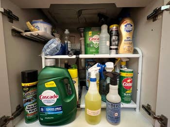 We hope you love our recommendations! While every product is independently chosen by our editors, BuzzFeed and our publishing partners may collect a share of sales or other compensation from the links on this page. You can read more about how our affiliate partnerships work in our Editorial Standards & Ethics Guide. Time to dig out the screwdriver and take some before and after pics as proof. Watching DIY YouTube channels, TikToks, and TV shows can be a bit discouraging if you've never held a drill before. But there are still TONS of manageable, easy (yes, really!) projects you can handle if your confidence in your home improvement skills is severely lacking. There are little tweaks you can make throughout your home, including doubling a closet rod's storage capabilities, installing a built-in night-light on an oft-used power outlet, and even zhuzhing up your old stained couch with a velvet slipcover that might make your spouse think you bought a new piece of furniture. Joke's on them! Read on for some extremely realistic DIY inspo. Promising review: "Easy to install. Lights provide ample lighting; USB allows lights to be a standalone fixture without tying up another wall socket. The USB interface also acts to turn the lights on and off with the TV. Backlighting also seems to make the screen seem sharper." —Shaun Get it from Amazon for $14.99+ (available in sizes S–XXL). Note that this ships with a $35+ order. Promising review: "Great shoe holder. Love these for shoe storage as they are sturdy and tall enough for chunky shoes." —Janet Promising review: "Where do I start? I absolutely LOVE this product. I wanted to replace our bathroom mirror, but due to the size, it would have cost a lot! I came across this on Amazon and decided to give it a try. The application process was super easy and applied without bubbles as long as you go slow and rub it down as you go. I kid you not. It looks like wood and feels like it, too! You can feel and see the 'wood grain.' It’s absolutely stunning and looks like I bought a whole new mirror." —Taylor Get it from Amazon for $6.98+ (available in two sizes). Promising review: "I like this so much that I actually just ordered another one for under the bathroom sink. Not only did it tidy the clutter and make items easier to find at first glance, but also made it possible for me to store another few items below the sink, including the spray cleaners I use for my countertops. I didn't configure it around pipes (as I see can be done), but actually used the flexible shelving options to place taller or larger items directly on the floor of my under-sink storage — rather than on the lowest shelf (see last photo) — to maximize my storage possibilities and keep regularly used items accessible. I also didn't fully extend the shelving, just as suggested by the manufacturer for stability purposes ... and still found it offered ample storage. Easy to assemble, with some flexibility for shelf height and placement — highly recommend!" —Amazon Customer Get it from Amazon for $24.87+ (available in three finishes). Promising review: "This bracket is awesome and was extremely easy to install. We were able to hang curtains over our vertical blinds in just a few minutes and didn't even need any tools. Great product!!!" —Amazon Customer Get a set of two from Amazon for $18.95 (also available in brown, black, gold, and brass, and also available in inside-mount brackets). Promising review: "So easy to set up! All you do is peel tape and adhere to a CLEAN and DRY door. Also looks great, I don't even notice it. I had a huge gap under my door. I could smell and hear everything from the hallway. Smells, drafts, and sound all are less of an issue now." —Brit B. Get it from Amazon for $8.99+ (available in four colors). Promising review: "I can't believe how well Old English works! I recently purchased a home where a dog previously lived and had horribly scratched the woodwork. I thought I may have to sand and refinish the woodwork around two doors. Old English saved me a lot of work!" —Behold Behold! Get it from Amazon for $4.82 (also available in a three-pack). Enhances the natural beauty and depth of grain on finished *and* unfinished wood. For use on antiques, dining tables, kitchen cabinets, wood doors and trim, etc. Promising review: "Very impressed so far. Just tried this stuff on one of our kitchen cabinets and it really did a nice job. The cabinets are 15-year-old cherry-stained hard work cabinets (oak, maybe?) and are scratched deeply in certain parts from the previous owner's dogs. Then, 20 minutes after applying this product and wiping it off, I can't complain at all about the results. It looks great in the picture, and even better in real life where you are not focusing on staring at imperfections. In addition to helping tremendously with the blemishes, it also leaves a nice glossy shine on the cabinets, making them look clean and fresh (not over the top glossy and fake). For the minimal price, I can't complain at all. Finally, I used about 1/3 of an ounce to do the 36-inch double base cabinets and the 36 inches wide drawer, so I believe the 16-oz bottle will last quite a while." —Patrick Gallagher Get it from Amazon for $10.88 (also available in a six-pack). Promising review: "I can’t believe how well these work! Much better than I was expecting. I just had my home interior painted and the painters damaged a fiberboard medicine cabinet when they removed the masking tape. It ripped off the fake wood veneer. These markers completely filled in the ugly spots and the colors blended well. I love that it appears to have some clear coat in it too as it dries with a slight shine that makes it look more like wood stain rather than marker. I also used them to stain wood filler in two spots in my maple kitchen cabinets where a previous home owner had hung a paper towel holder and I really struggle to see the hole! It looks fantastic. I highly recommend this s