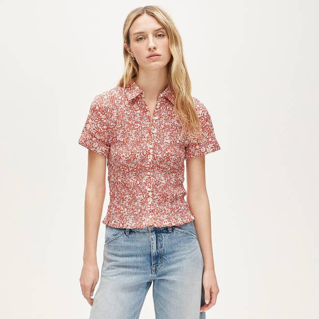 Promising review: "I hesitated buying this although I loved the vintage look as the cut is a little strange. It went on sale and I scooped it up! So glad I did! It’s super cute with jeans and a tee underneath." —Levine58