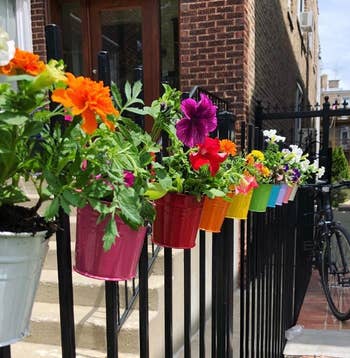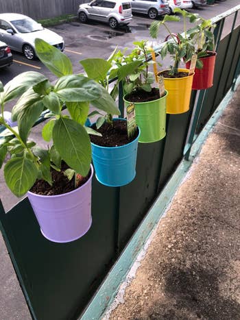 Promising review: "Because I rent, I can't put nails in the fence. I got the trellis and hung it with colorful pots to brighten up the rather ugly fence. They worked great for my needs. They hold a variety of herbs and flowers now. I love the colors and whimsical look they add to my little backyard space. I would buy more if I had a space for them! Oh, and these are pretty sturdy. I was impressed. I purchased the 6-inch pots." —Charles Chenet
