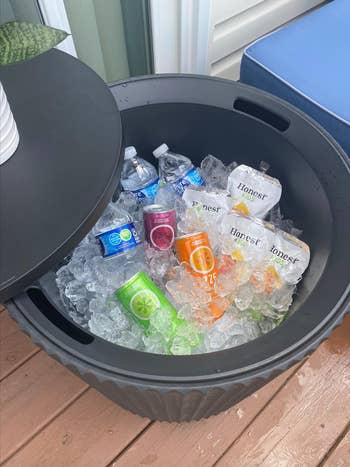 Promising review: "I bought this cooler round side table with the intention of using it not as a cooler, but as a side table for our hot tub — and it’s perfect! It looks great, is the ideal height, and the storage inside is a total bonus. I keep towels inside and they stay clean and dry, even in damp conditions. Sturdy, stylish, and super functional. Highly recommend for anyone looking for smart outdoor storage with a sleek look." —PatriceB
