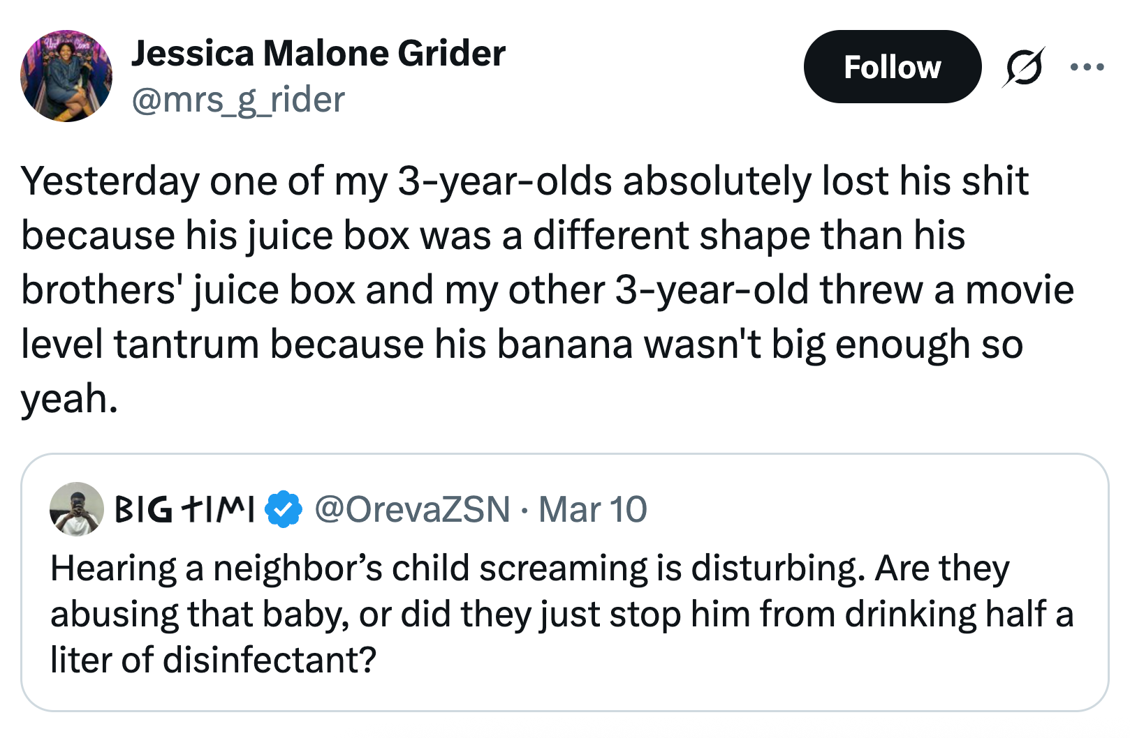 "I don’t know how people accidentally leave their toddlers in the car. Mine doesn’t stop talking so I would immediately be confused by the silence." As a Senior Lifestyle editor at BuzzFeed, I cover stories about health, home, politics, and relationships, with a special focus on work and money. As always, if you like these tweets, give the authors a follow to brighten up your feed.