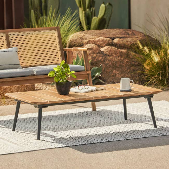 We hope you love our recommendations! While every product is independently chosen by our editors, BuzzFeed and our publishing partners may collect a share of sales or other compensation from the links on this page. You can read more about how our affiliate partnerships work in our Editorial Standards & Ethics Guide. Patio season can't come soon enough. From dining tables to planters, find everything you need to enjoy it. The set includes two benches and a table. Promising review: "It is so beautiful! High quality and easy to assemble." —Jamie H. Price: $1,929+ (available in two stains). Promising review: "Amazing value. Super sturdy/heavy and expensive looking." —Torre L. Price: $319 for two (originally $348; also available individually in two sizes) Promising review: "Great chairs! Perfect size for my little space. Nice weight, heavy enough to not blow around on the deck but can be easily moved and stacked." —Sara B. Price: $149+ (available in five colors and with or without arms) Check out the matching outdoor dining table, too. Promising review: "Love these chairs. Very attractive and sturdy. Easy folding for storage." —Kate D. Promising review: "I love this little table. It doubles as a stool for our kids on the deck sometimes. It's really sturdy and heavy, but still easy to move around. And the terrazzo style is so beautiful!" —Kelly H. Promising review: "I love my new coffee table. Everything is perfect. I really love the wood on the top of the table. Wow!" —Caroline B. Promising review: "Love this runner. Just what we needed to add warmth and texture, naturally!" —Monica M. Price: $349+ (available in two sizes and two colors) Promising review: "These planters are so simple and chic.. The planters are deep enough to plant all of your special plants, and include drip holes so the water can drain properly." —Chandler E. Price: $139+ (available in two heights and three colors) Promising review: "Solid! Looks just like the photos. Finish is beautiful and feels high quality." —Lindsey B. Promising review: "The cutest little pouf! An extra seat that’s easy to move around and finishes off a space nicely. The colour is perfection!" —Kayla C. Promising review: "Love this planter! Got this and the large one. They are true to the description and much more lightweight than I expected! Quality is very good." —Danielle S. Price: $99+ (available in two sizes and two colors) Promising review: "This is not your standard folding table. The wood is beautiful and works well on my patio." —Janice W. Don't forget to pick up an umbrella base to go with it. Promising review: "Love it. Easy to assemble, open, close, and tilt. Looks great and provides wonderful shade." —Patricia C. Promising review: "A great table, colorful, practical and a real addition to your outdoor living." —Ron P. Promising review: "Just as pictured! It’s sturdy, classic, and charming. Easy to assemble." —h j. Promising review: "Perfect outdoor chair, overall comfortable looks chic and sturdy. Love!" —Amber S. Price: $199 (available in two colors and as a set) Promising review: "These are perfect! And easy to put together." —Eileen B. There's also a similar style with a little more back support. The set comes with a stand and a lantern. Promising review: "I needed a reading lamp that couldn't be easily knocked over (like a table lamp), had some interest yet still casual enough to pull off a 'beachy' coastal vibe, and would fit in a narrow corner. The Bori Small Lantern set hit every target, PLUS no outlet necessary (i.e., no messy cords)! This handy feature means I can easily borrow and use the lantern when entertaining outside." —Cynthia M. These cushions work with the Callais chair. Price: $149+ (available in lounge chair, sectional, and sofa covers and three colors) The reviews for this post have been edited for length and clarity. BuzzFeed Shopping is service journalism first: our writers and editors spend all day shopping so you don’t have to, vetting products, fact-checking brand claims, and surfacing what actually helps in real life. We center readers over revenue, recommend products with authenticity (using real experiences, not ad-speak), and reflect our diverse audience, inclusive of a variety of price points, people, and needs. We cut through fake deals, favor useful info over glossy fluff, and recommend both budget and splurge options with context so you can decide what’s right for you — and still have a little fun along the way. Courtney Hayes is a freelancer who has been writing for BuzzFeed Shopping since 2019, covering a wide range of topics including home decor, fashion, beauty and skincare, gift guides, pet products, and more.