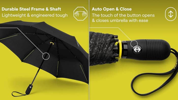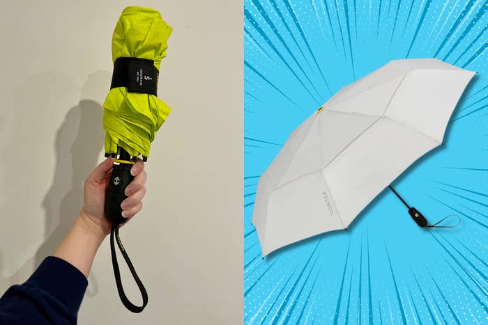 We hope you love our recommendations! While every product is independently chosen by our editors, BuzzFeed and our publishing partners may collect a share of sales or other compensation from the links on this page. You can read more about how our affiliate partnerships work in our Editorial Standards & Ethics Guide. It's actually windproof — and it'll last me forever. Another perk of this umbrella is how easy it is to open and close, thanks to the automatic button on the handle. Compacted down to just 12 inches when closed, the button immediately expands the handle and opens the canopy, so there’s no delay when I’m ready to head outside. The button also automatically closes the canopy. I do still have to manually compact the handle, but I’m still saving time and energy overall. Speaking of the canopy, it comes in two sizes: compact (43 inches) and jumbo (54 inches). I find the compact size to be perfect for my needs, but reviewers say the jumbo is better for those who want more coverage (though it is a little heavier, and compacts down to 15 inches instead of 12). Regardless of which size you pick, the canopy offers UPF 15 sun protection, making it useful year-round. “The Real Deal. I’ve used this about a year now and I love it! No issues, so far, and it seems robust. Open and close mechanism works great and it’s very compact for the opening size. I’m totally happy with this purchase.” —JM “I bought 3 of these to take with my family on an extended vacation driving around Ireland, Northern Ireland, Iceland and Scotland. It rains almost every day in these places and the wind is really something to add to it. These umbrellas withstood everything we went thru on a daily basis. Hard to argue with quality. You get what you pay for. If you are looking for an umbrella to withstand high winds and rain, look no further!” —Larry8241 “I liked this SHED RAIN umbrella so much that I purchased another for my wife and soon after that, I purchased 15 more for my children and grandchildren. It’s the best umbrella I’ve ever had, especially while getting back into my car during a heavy rain.” —Iowa boy “The only umbrella one should have in the Windy City! Shed Rain umbrellas are the only umbrellas that can last thorugh a rainy day in the Midwest. This model tops any of the previous Shed Rain umbrellas that I’ve had in the past. These are not commonly seen in the stores anymore. I was glad to see that I could get Prime shipping on this.” —macnet427 “This is an unbelievable umbrella. I recently traveled to Ireland for 13 days where it was rainy and windy every day. This umbrella stood up to the fiercest of winds throughout the country, even on the Cliffs of Moor! I watched others’ umbrellas being ripped inside-out in the wind and rain, and mine remained a vortex against the elements! It is oversize yet compactable. Dries quickly, and folds effortlessly. You will not be disappointed at all! Absolutely love it!” —gamma Reviews have been edited for length and/or clarity.