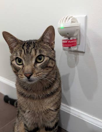 Promising review: "I can’t express enough how much this has changed mine and my cats' lives. Merging two households wasn’t easy on the cats. One male cat had a hard time moving into a new house with new pets. He had terrible behavior problems and would cause us and the other cats a lot of stress. His bullying led to the other two cats having health problems. He would get into moods where he would chase and attack the others and would not let up. We tried everything the vet suggested to reduce theses incidences, but getting Feliway was the only thing that worked. He is a completely different cat now. He is calm and his outbursts rarely happen. He has become a couch cat and has turned into the sweetest boy. The other cats aren’t stressed anymore and neither are we. We have three diffusers in the three rooms we have had incidences in. It definitely has more of an affect on the male cats than the female. If you aren’t noticing a difference with one diffuser I would suggest getting a second. We couldn’t believe that this one product could fix everything, but it did. If he starts to act out again we check the diffusers, and sure enough, one of them will be out. If your cats are having any behavior problems or stress please try this!" —Kristine Spencer