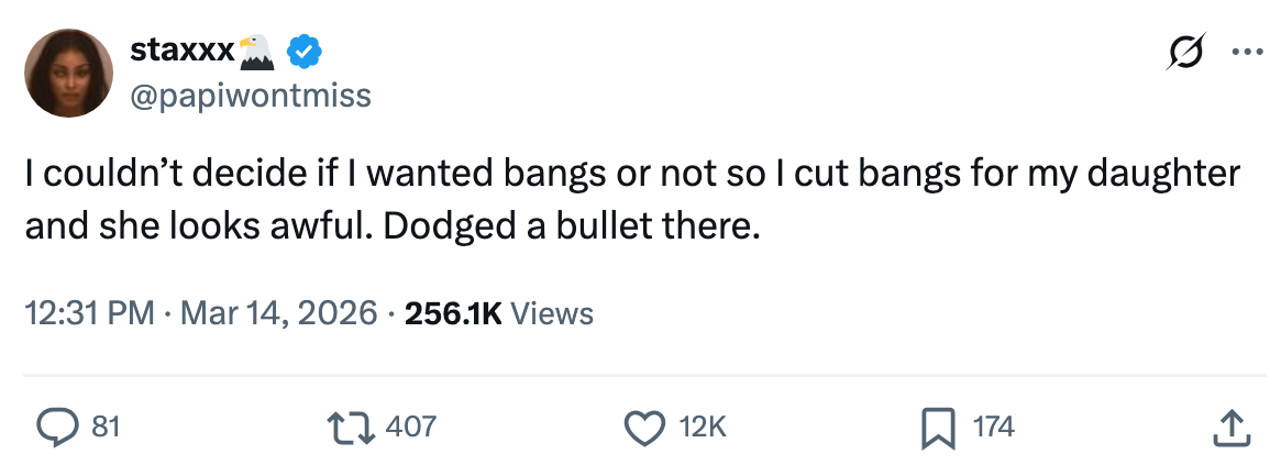 "Okaaaayyyyyy let me juuuuuuuust shaaaaaaaaare my screeeeeeen... okaycanyouseeit?" I'm Chelsea, the Weekend Editor at BuzzFeed, where I cover everything from pop culture and politics to TV and celebrity news. While we can't endorse what X has become, we can bring you the worthwhile moments that still exist there, curated and free of the surrounding chaos. Also, be sure to follow these users if you like their tweets! googled if one cigarette a week is okay and they said no pic.twitter.com/PLoUFUtMCV got my ears professionally cleaned at a hearing clinic and bitch I have not been hearing shit for years 😭😭😭😭😭😭😭 pic.twitter.com/9trCMaGmV4 Therapist; “There is a tiger in you”The tiger in me: pic.twitter.com/goTuPfQG9F WHEN YOUR FRIEND USES THE WORD “FRIEND” TO DESCRIBE YOU pic.twitter.com/SoLOOWlPV3 Just found out I’m 5’6 and not 5’5. It was nice knowing you short girlies. Tall girlies, where do I sit? pic.twitter.com/icIAUOuaY1 How it feels to steal someone’s tweet and it’s a hitpic.twitter.com/ar5Z454ajZ https://t.co/WHVh96J88a