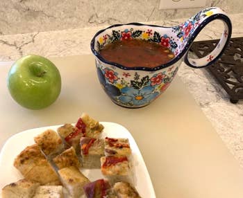 Promising review: "I love love love this cup. My arthritic hands can hang on to it safely. It’s beautiful on the shelf. It holds a lot of cereal with fruit, or soup with lots of crackers, or an extra-large hot fudge sundae. Quite pricey but great for those special little moments in life when you need a break. And at the end of the day, I look for my cup to make my cup of herb tea. I love 'my cup.' And it doesn’t seem to break easily. It’s still in one piece, and the only other person I let use it is my 3-year-old great-granddaughter. She loves it, too. Yes, I have to get another." —Second Soprano