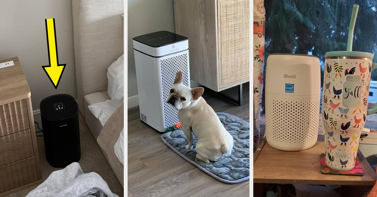 We hope you love our recommendations! While every product is independently chosen by our editors, BuzzFeed and our publishing partners may collect a share of sales or other compensation from the links on this page. You can read more about how our affiliate partnerships work in our Editorial Standards & Ethics Guide. Because the air inside your home deserves a little quality control. The right one can help you filter out things like dust, pollen, smoke, and pet dander, so your space just feels fresher and easier to breathe in. After looking into top-rated models and standout features, I've rounded up the best air purifiers you can buy right now, including smart options you can control from your phone, powerful machines designed for large rooms, and even a travel-friendly pick you can toss in your suitcase. By the way, you'll see mentions of a "True HEPA" in this post. That just means it guarantees the air filter removes at least 99.97% of particles 0.3 microns or larger, adhering to strict US Department of Energy standards. A consistently top-rated Coway Airmega AP-1512HH(W) air purifier that manages to balance strong performance, a reasonable price, and easy-to-use features, which is exactly why it shows up on so many expert "best overall" lists. It uses a four-stage filtration system with a True HEPA filter and activated carbon layer to capture airborne particles like dust, pollen, smoke, and pet dander, and its air-quality sensor will automatically adjust the fan speed when the air gets dirty. It's powerful enough for most living rooms and bedrooms without taking up too much space. Promising review: "Living in a part of the world that's often affected by wildfire smoke, I've tried many different air filters over the years. I now own several of these Coway AP-1215 filters. They've been 100% reliable — never a failure, never a dying fan, never a squeak or vibration. They're super effective — it's amazing how fast the filter can clear out even the smoke and grease from cooking on a wok at high temperature. They're very quiet in normal operation. And the filter's ability to sense air quality and respond by increasing or decreasing flow is almost uncanny; even if I just walk into a dusty closet and back out, the filter in my workroom senses the change in the air and steps up within seconds. I would absolutely buy more of these." —walterh@cafewalter.com A PuroAir 130i air purifier for pet owners who want help tackling the steady parade of pet hair, dander, and lingering odors that seem to magically appear the moment a dog shakes or a cat launches off the sofa. It uses a three-layer filtration system and an activated carbon layer to capture airborne pollutants. Promising review: "We have several dogs and cats that are inside/outside animals with an occasional chicken. Hahahah….My breathing is so much better. It’s very easy to function. I bought three and had them spread out. Great purchase!" —Elizabeth "Everyone should have at least two in their apartment or house. If you could see all the HAIR and DUST it collects? You'd get it. Who wants to breathe THAT? Not me!" —Stephen Get it from Amazon for $89.99+ (available in three room coverage sizes). A Medify MA-40 air purifier that's especially helpful if pollen, dust, or pet dander tend to make your life miserable. It uses an H13 True HEPA filter designed to capture extremely small airborne particles, which will help clear the air of many common allergy triggers. Promising review: "A cat-sitting client of mine has the bigger version of this Medify MA-40 Air Purifier, and they swear by it, so I decided to order this model for my one-bedroom, one-bathroom (720-square-foot) apartment. I couldn’t be happier!! This is the best air purifier I’ve ever bought. It has really helped my allergies. Not to mention that it has helped my senior cat’s respiratory issues as well. He sneezes significantly less and breathes better overall. Highly recommend!!" —Thunder Dawg Thor Get it from Amazon for $249.99 (available in two sizes). A powerful Honeywell HPA300 air purifier designed to move a lot of air quickly, which is exactly what you want if you're trying to reduce common asthma triggers like dust, pollen, smoke, and pet dander. It uses a True HEPA filter, and its strong airflow helps clear the air fast. It doesn't have a bunch of smart features, but it's widely considered to be a dependable workhorse that focuses on the one thing that matters most: filtering a large volume of air effectively. Promising review: "It actually works! I have long suffered from a stuffy nose and asthma. After some research on the internet and looking through Consumer Reports, I decided to give this air purifier a try. The result is awesome. Both my wife and I have noticed the difference almost immediately. Our sleep quality has improved, and our stuffy nose symptoms have been greatly reduced. It sits quietly in the corner of the room and does the work almost 24/7. Overall, we are both very happy with this product! Highly recommended for people who are looking for some extra help to reduce allergic symptoms." —Lingde Jia A budget-friendly Winix A231 True HEPA air purifier that'll still deliver the kind of performance you'd expect from a much pricier machine. It does everything it needs to and more, including helpful extras like an air-quality sensor and auto mode, which'll automatically adjust the fan speed when the air gets dusty or smoky so you don't have to babysit it. Promising review: "I have it in the largest area of my home: open living room, kitchen, and dining area, about 800 square feet. So far it has been going 24/7 for two weeks and no issues. When I first turned it on, the air quality light was red, then yellow for almost an hour, and now it stays blue most of the time, except when opening doors a lot. You can definitely tell a difference in the air quality and freshness. Going to purchase another one for sure!" —melissa A Blueair Blue Pure 511