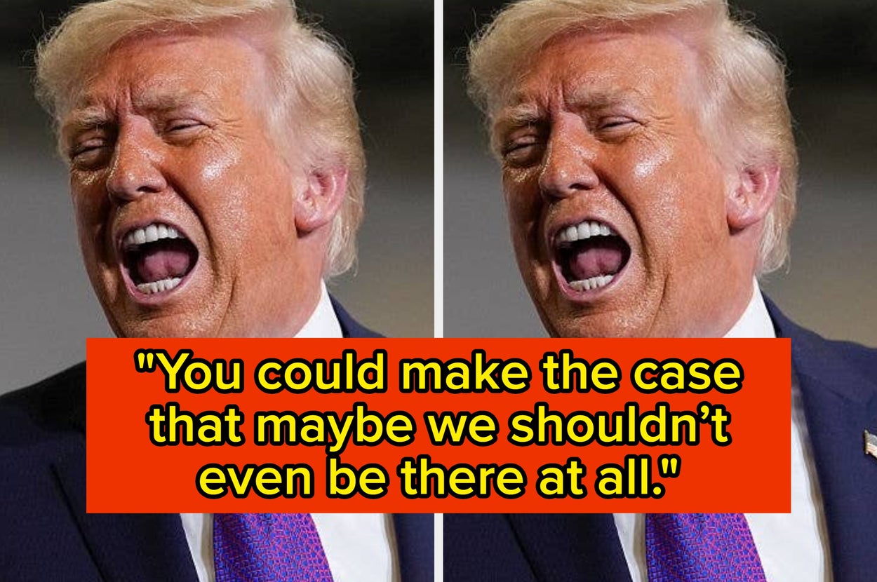 "Sorry, what was that?" one critic hit back at the president on social media. Trump: You could make the case that maybe we shouldn’t even be there at all pic.twitter.com/eksmDTpT3Y Sorry, what was that? https://t.co/1Fkj07etfj I’m sure the fallen soldier families feel comforted- unbelievable https://t.co/oapvsvj3cw Trump has a good point; maybe the U.S. shouldn't be there at all. Hope he takes that one to heart. https://t.co/ZstaRPIi8U It’s a little late for that Donnie. https://t.co/Fy2ymYXu4b So he started a war that should never have been started that he can’t finish and is now demanding others join https://t.co/hveWzURqFa Such a stupidity!Trump started the war so he is responsible.Trump has raised the global oil price so he is responsible and the price hike hits all regardless of where they get their oil.How can the U.S. have such a dumb & rude president? https://t.co/kukdnGP5Jr This is rich coming from him. Why would these other countries lift a finger to help him clean up the mess he made after he’s threatened more than half the world with insults, tariffs, and demand for other countries to give themselves over to the US? You don’t spit on others and… https://t.co/PBbZ9hfgaL Trump starts the biggest war in the Middle East in 20 years > Trump maybe we shouldn’t be there at all…. https://t.co/hKkWbd10mK This article originally appeared on HuffPost.
