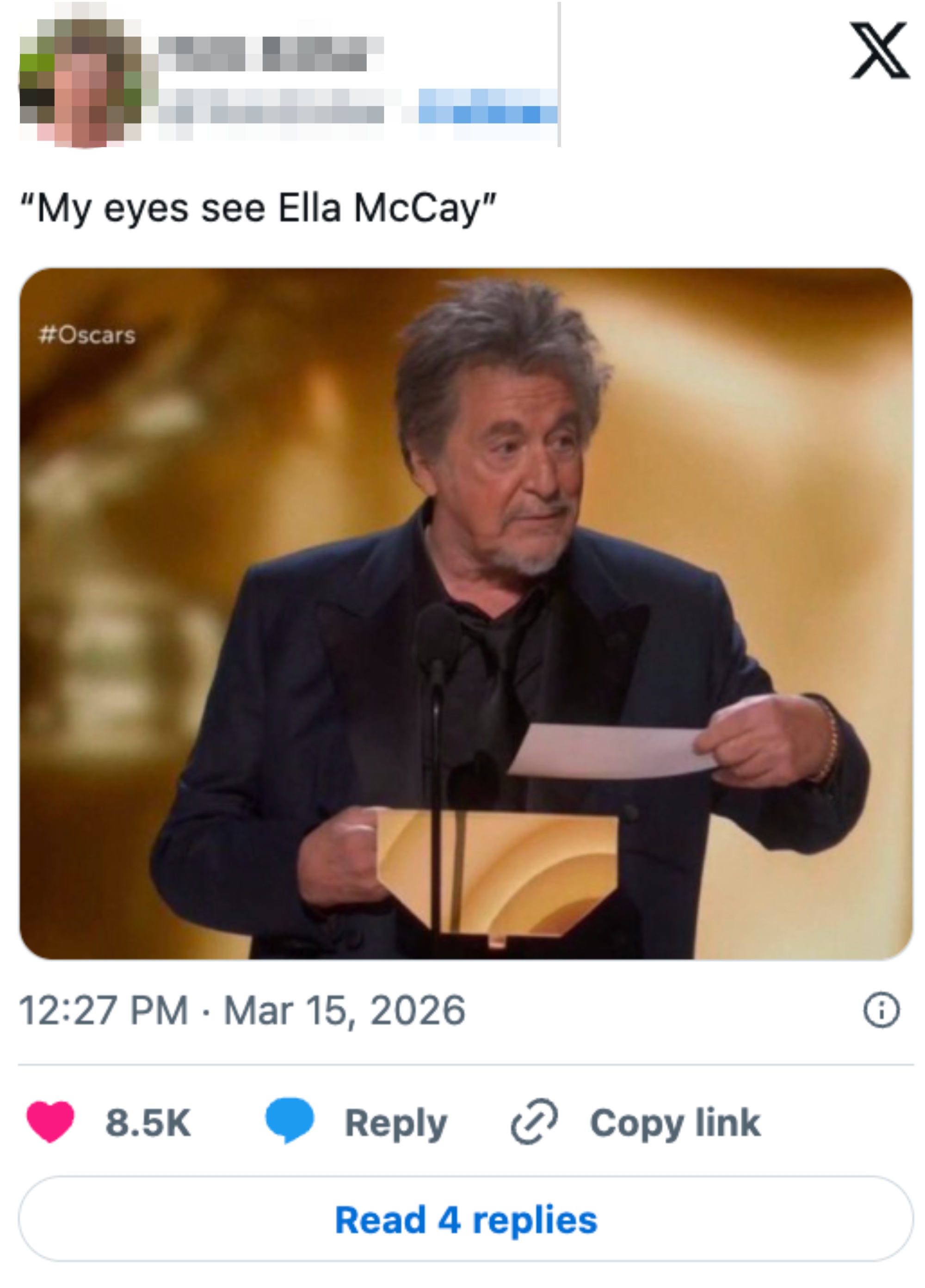 Hiiiii, I'm Bella, a Costa Rican-American writer based in Southern California on the trending news team here at BuzzFeed. Editor's Note: While we can't endorse what X has become, we can bring you the worthwhile moments that still exist there, curated and free of the surrounding chaos. “and the winner of best actor goes to… what the hell? HUDSON WILLIAM!” pic.twitter.com/Ek9qGShmme not predicting the oscars this year just along for the ride pic.twitter.com/BUAiHg9GLj Timmy is gonna do this as an apology to the opera community if he wins pic.twitter.com/rCjqgwqviI what if he starts doing this mid acceptance speech as a tribute and an apology to the opera and ballet people pic.twitter.com/xkNf1bPaot “and the oscar goes to…. RYAN COOGLER” pic.twitter.com/pXdlh33jwS