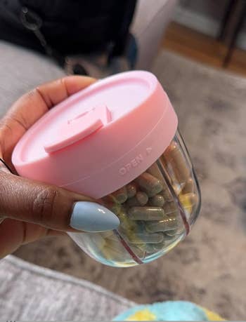 Promising review: "This is the best pill container I have found. It holds a month’s worth of pills in each compartment and is compact and easy to store and travel with. It is very sturdy, and I don’t have to worry about the cap opening accidentally. The enclosed labels are a bonus, and the see-through exterior makes it easy to see how many pills are left. I keep it on my nightstand, and it doesn’t take a lot of space." —TA
