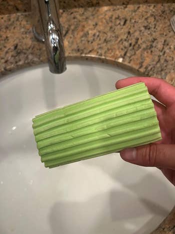 Promising review: "This is very handy for hanging a rag to dry or draining off the water from a scrubber. I really liked the fact that it can be cut down to the size you want. I cut off two to three rungs, which made it just perfect for what I wanted. The rubber edges keep it from falling off. Nice little gadget!" —andbrains