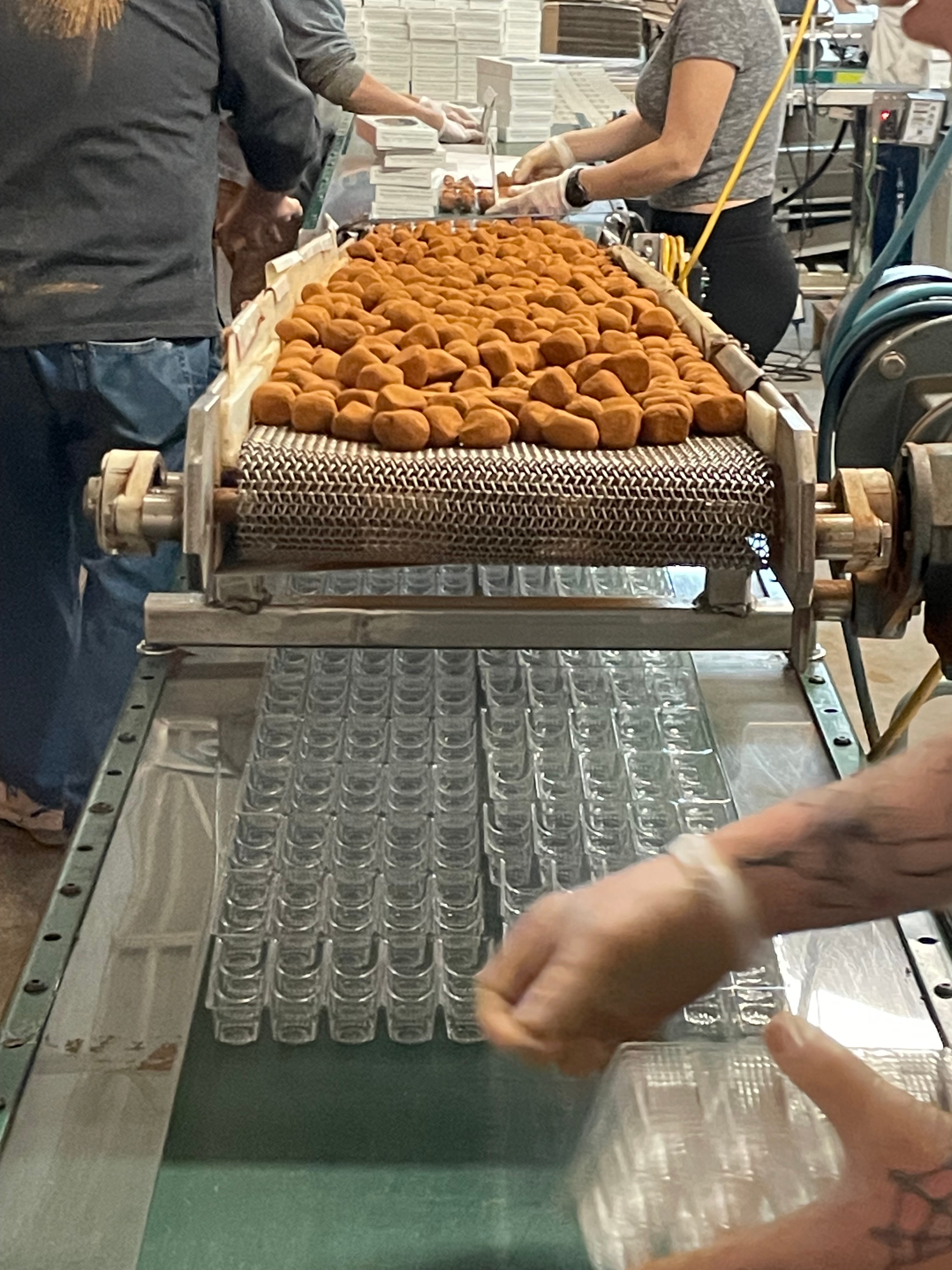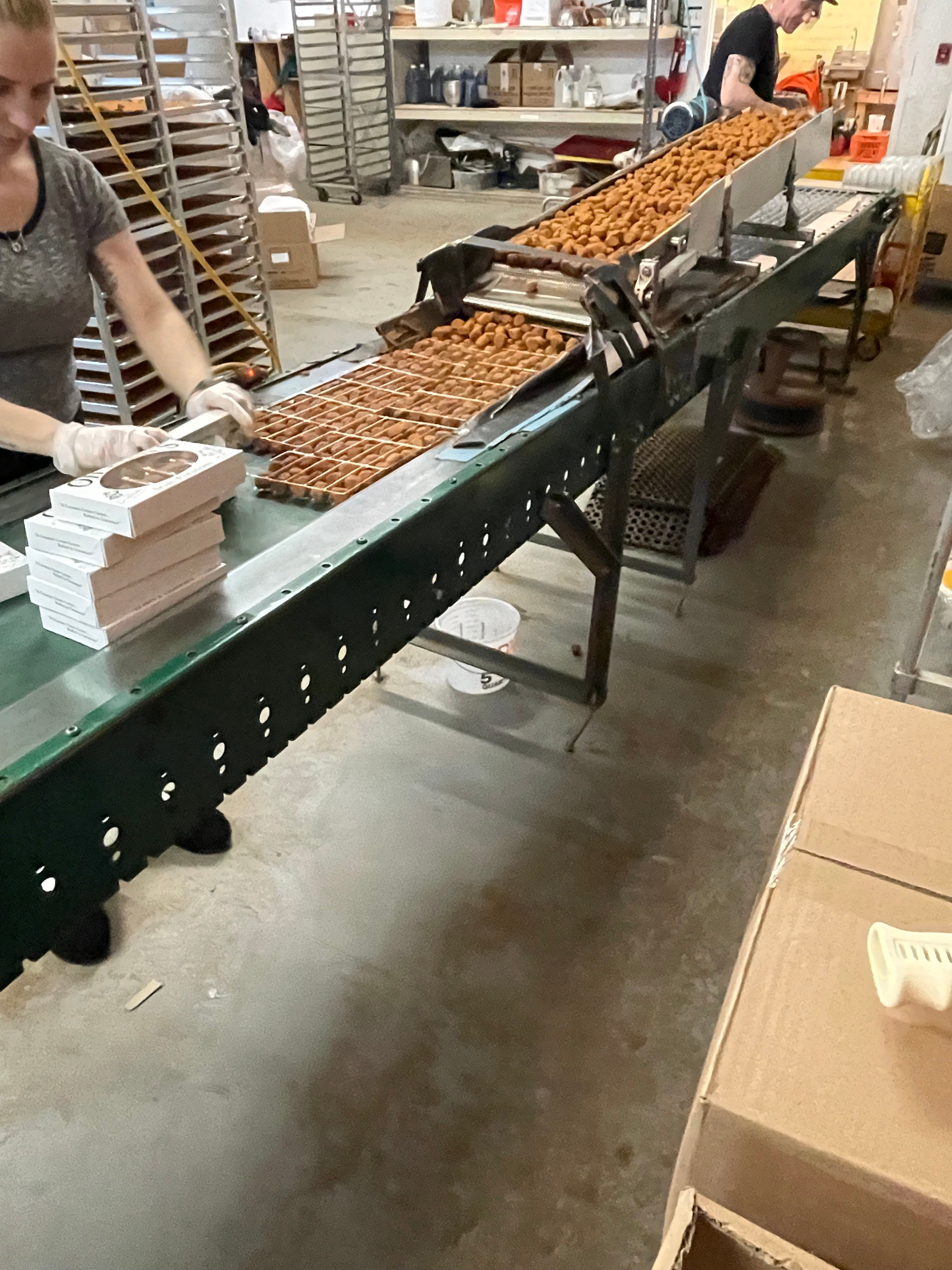 Luke is a writer and actor based in Philadelphia who loves deviled eggs and elaborate food adventures. John is laughing at me from across the ocean and, frankly, I deserve it. An extremely unassuming exterior hides candy secrets inside. This sign hangs proudly just outside of Dave's office. This 1989 news report shows the early Irish potato-making process, with Christopher running the show. Dave calls this the "Jimmy King Ball Dropper" in honor of the friend who got it for him. Look closely and you'll see Dave coming to the rescue after the machine malfunctioned. Remember that I Love Lucy episode? The chocolate one? This process is not that. These all were filled within a few hours.
