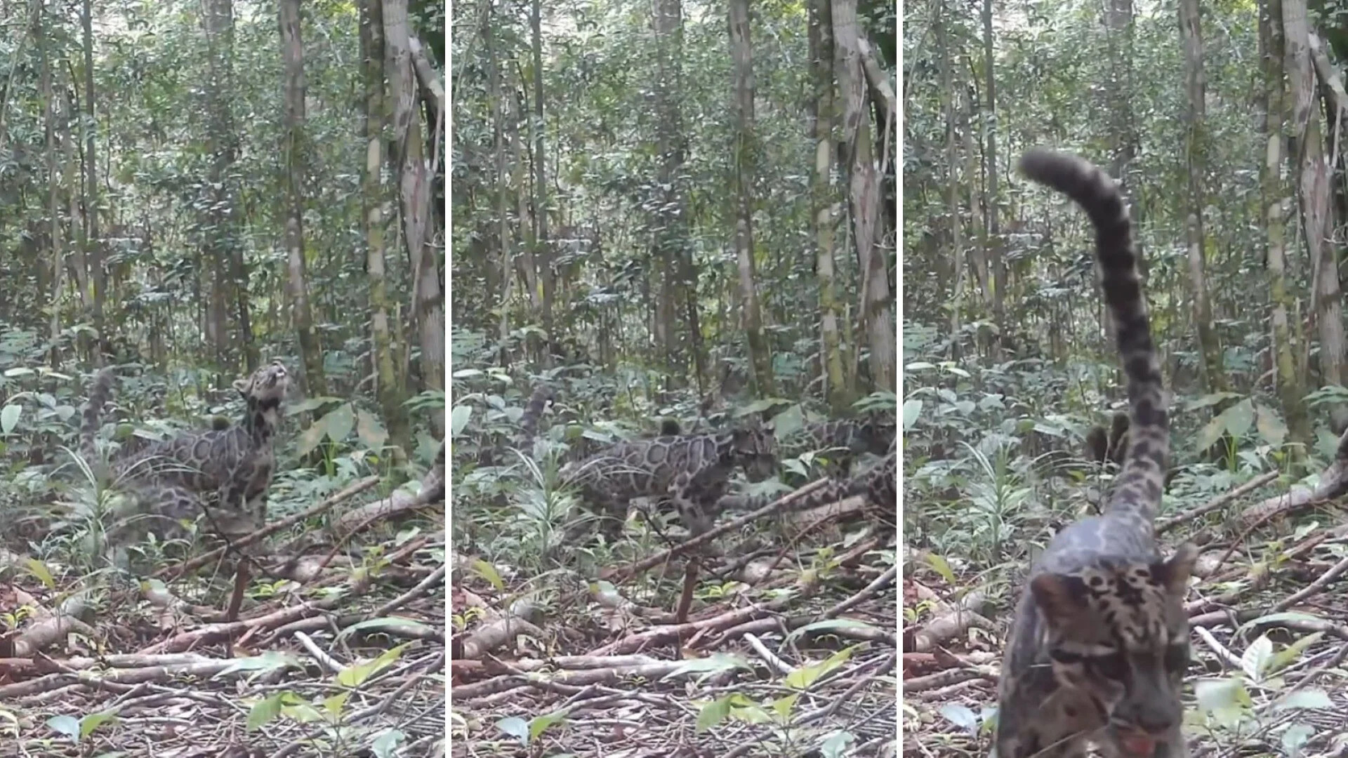 A rare sighting from deep in the forest of Borneo has given conservationists hope that the vulnerable clouded leopard is on the prowl. The Orangutan Foundation and Tanjung Puting National Park captured video of a mother and two cubs hopping through a thicket. One of the cubs even stopped to take a long look at the camera. The Bornean clouded leopard is on the International Union for Conservation of Nature Red List of Threatened Species, according to the foundation. The animal is endangered partly because of its low recruitment rate; few adults produce and raise offspring until they are two years old, at which point they join the breeding population. Deforestation has taken its toll on the leopard, which relies on forests for habitat. The foundation said in a news release that more than two-thirds of the animals have been killed in recent years. On Instagram, it noted this was the first time a mother and two offspring had been recorded. "For the population to be reproducing is an incredibly encouraging sign," it stated. Clouded leopards are known for their long tails, which match the length of their bodies, and teeth, which can reach 2 inches. The canine fangs are the longest of any feline, according to the Felidae Conservation Fund. The big cats prey on monkeys, deer, pigs, and sometimes birds and reptiles. Population estimates vary from 5,000 to 11,000 in Borneo and 3,000 to 7,000 in Sumatra. This sighting shows how important trail cameras are for scientists and researchers, who rely on the tool to track species diversity and distribution. A similar trap in Nigeria recently showed a pair of the rarest apes in the world. They can also help catch poachers. Elsewhere in Indonesia, conservationists are trying to save the Sumatran rhino, of which fewer than 50 remain. "The clouded leopard is an arboreal species and excellent hunter on the ground that plays an important role in maintaining the ecosystem," Orangutan Foundation research manager A. Yoga Perdana said. "As one of the rarest species to find, being able to see a female and cubs gives us evidence that they are healthy and actively breeding." Get TCD's free newsletters for easy tips to save more, waste less, and make smarter choices โ and earn up to $5,000 toward clean upgrades in TCD's exclusive Rewards Club.