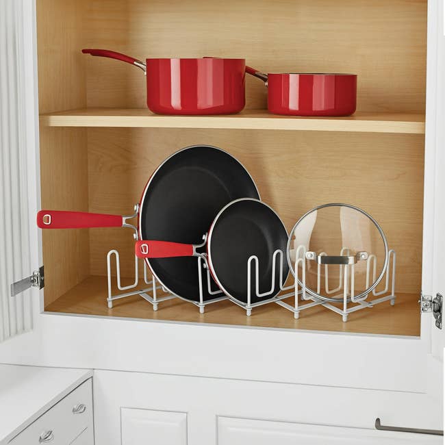 Promising review: “Perfect! Nice and sturdy, it fit perfectly in my cabinet and holds all the lids to my Pink Diamond pots and pans set, so I'm happy. Cooking is a little easier now thanks to this little contraption.” —Riva