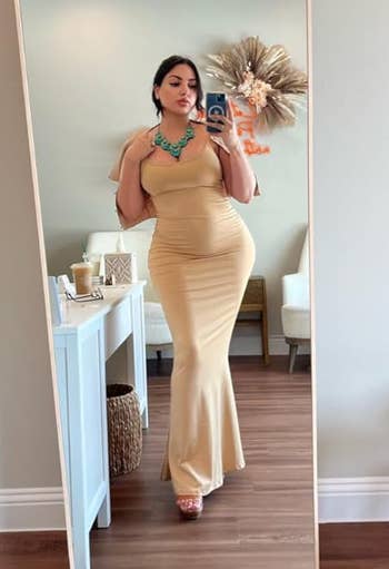 Promising review: "I have the Skims bodycon as well, and this is a great alternative! The Skims dress is ribbed, and the fabric is thinner and softer, but I don’t think that the Skims dress quality increases proportionally with the higher price point. If I were to purchase another bodycon dress, it would hands down be this one. It hugs my figure beautifully and can be layered and styled for all seasons. It’s one of the most versatile pieces in my wardrobe!" —Makayla Curtis